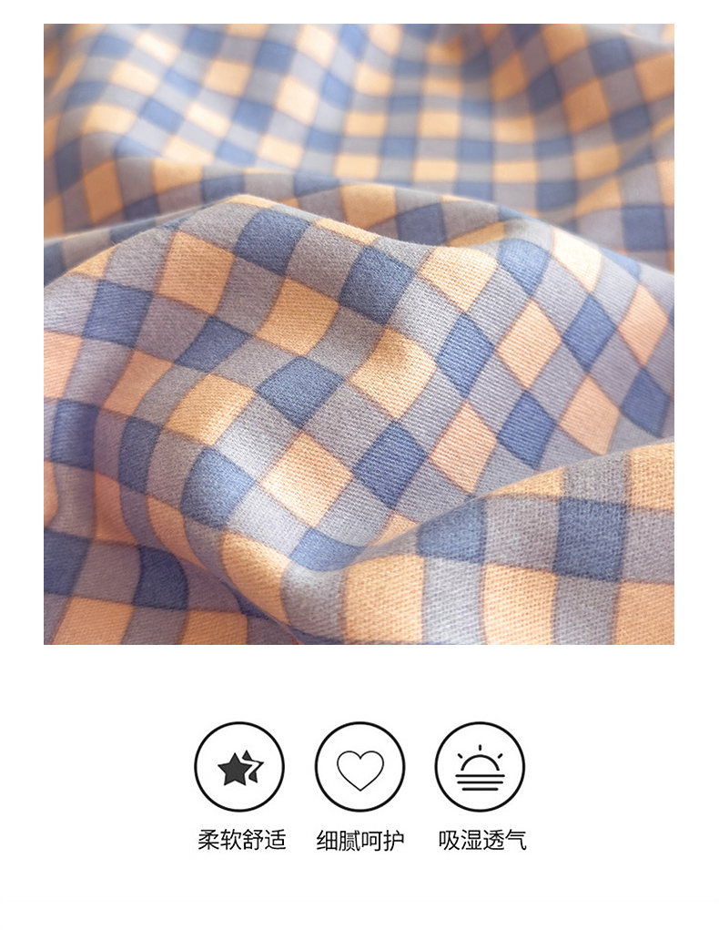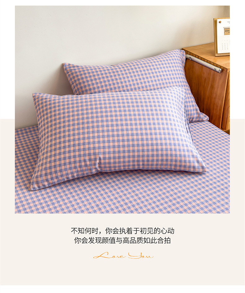 商品名称:芃成家纺 2024新款原棉加厚生态磨毛单枕套 幸运小格-紫粉