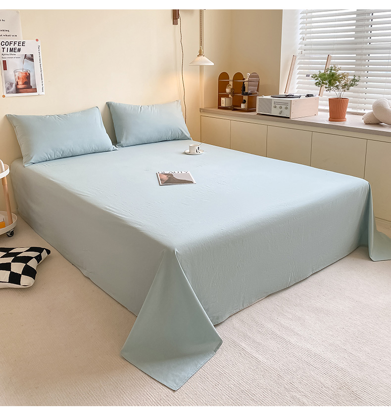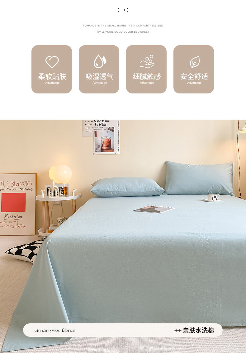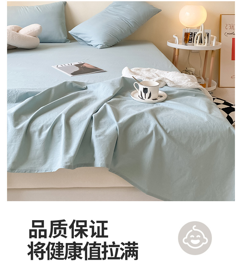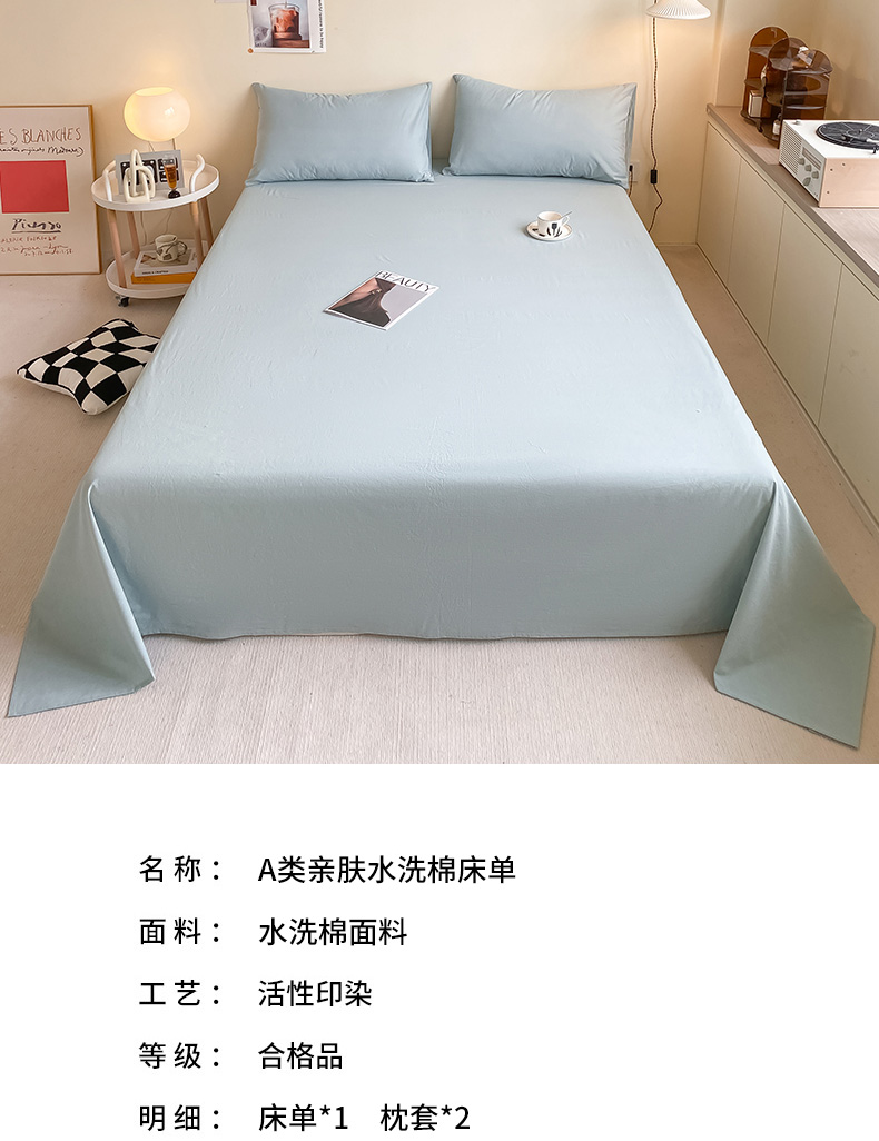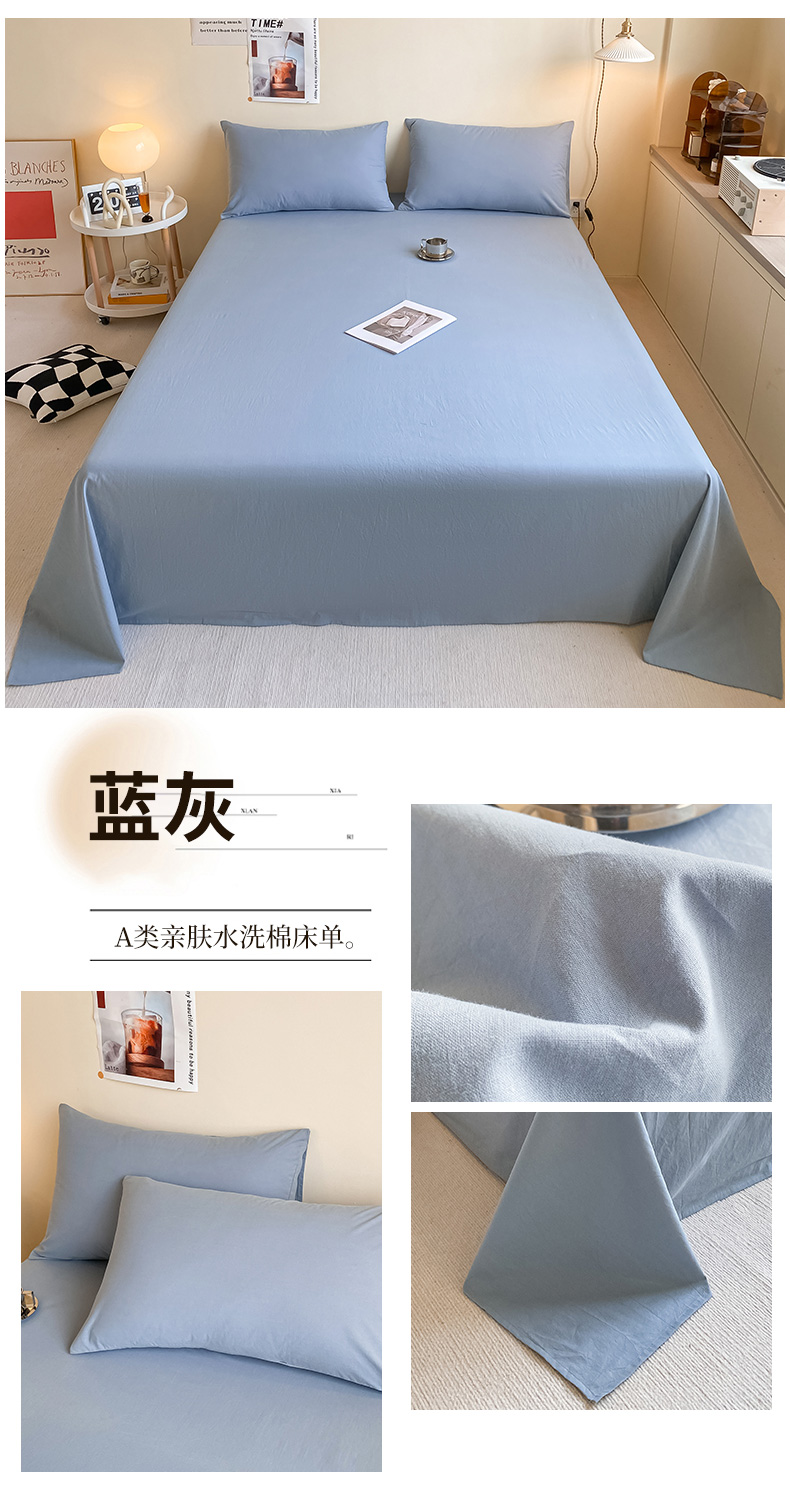 眠帛家居 2024新款A类亲肤水洗棉纯色单品床单三件套 繁星蓝