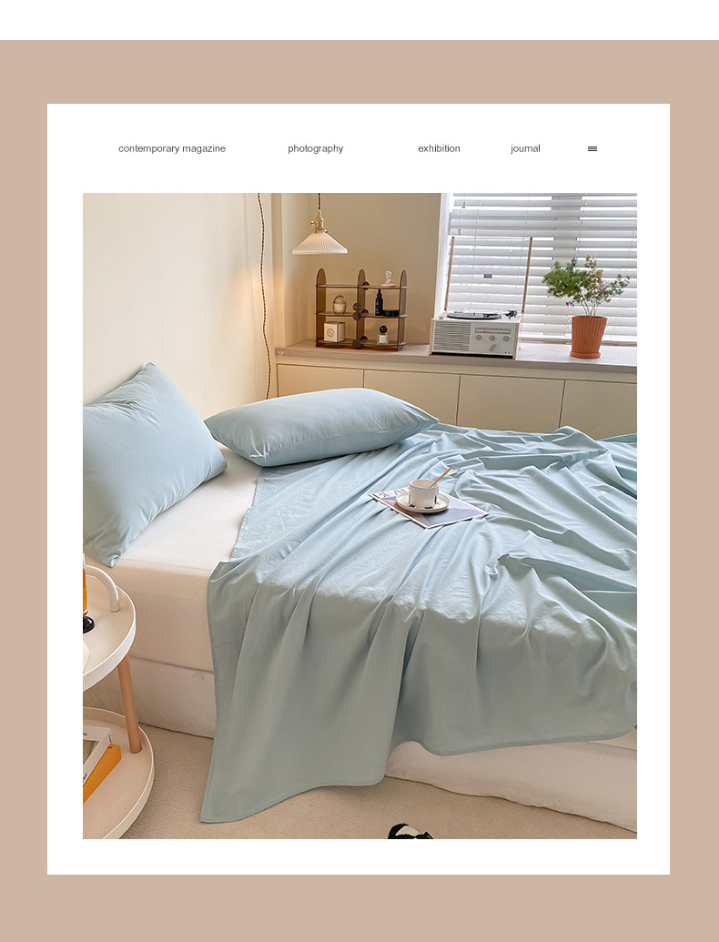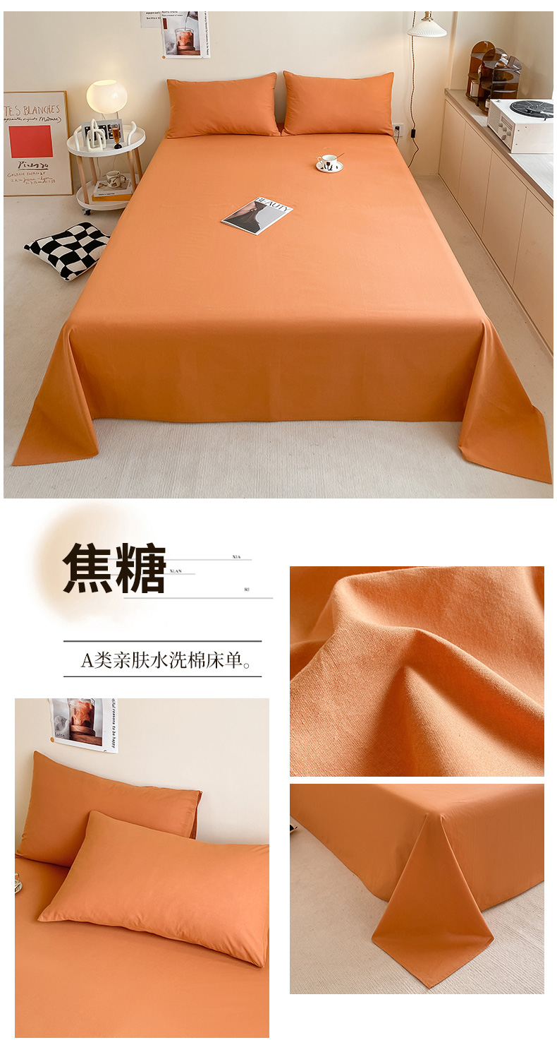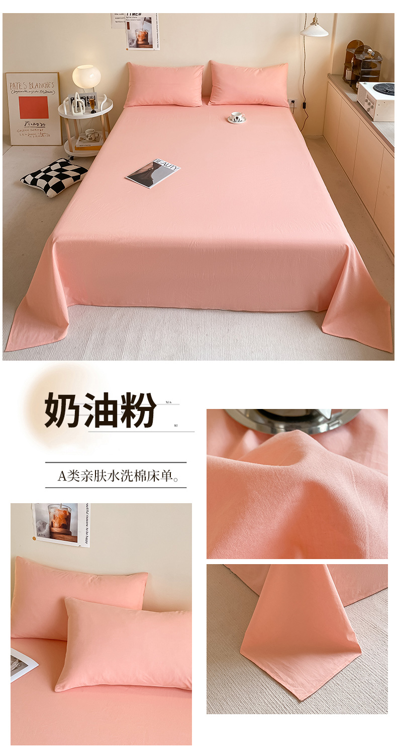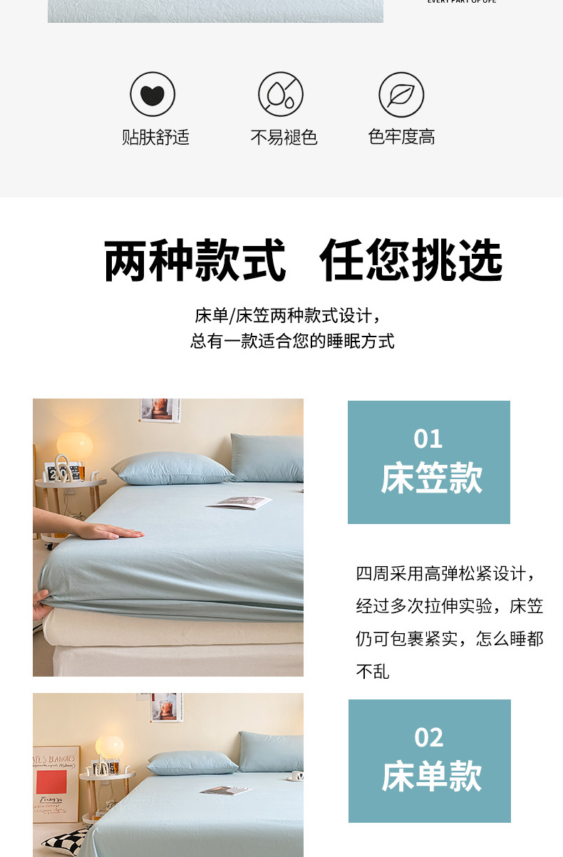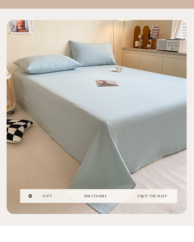 眠帛家居 2024新款A类亲肤水洗棉纯色单品床单三件套 繁星蓝