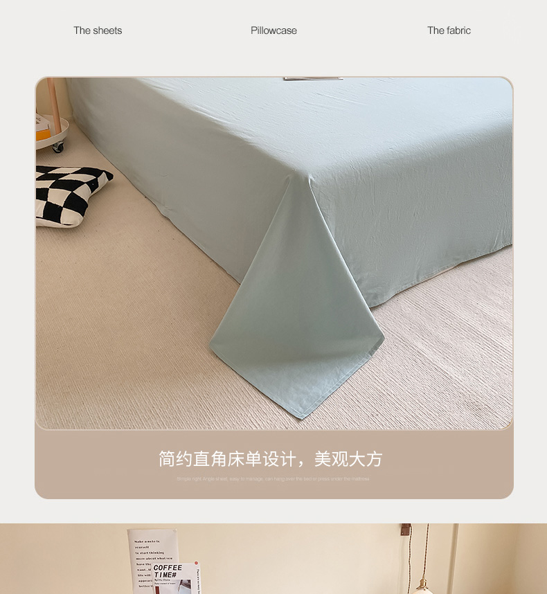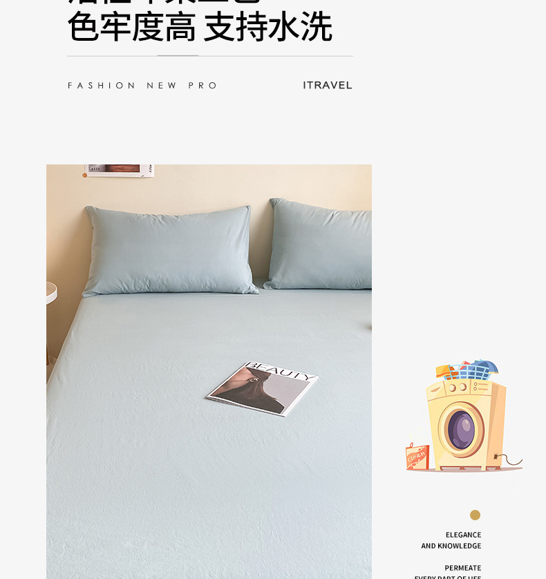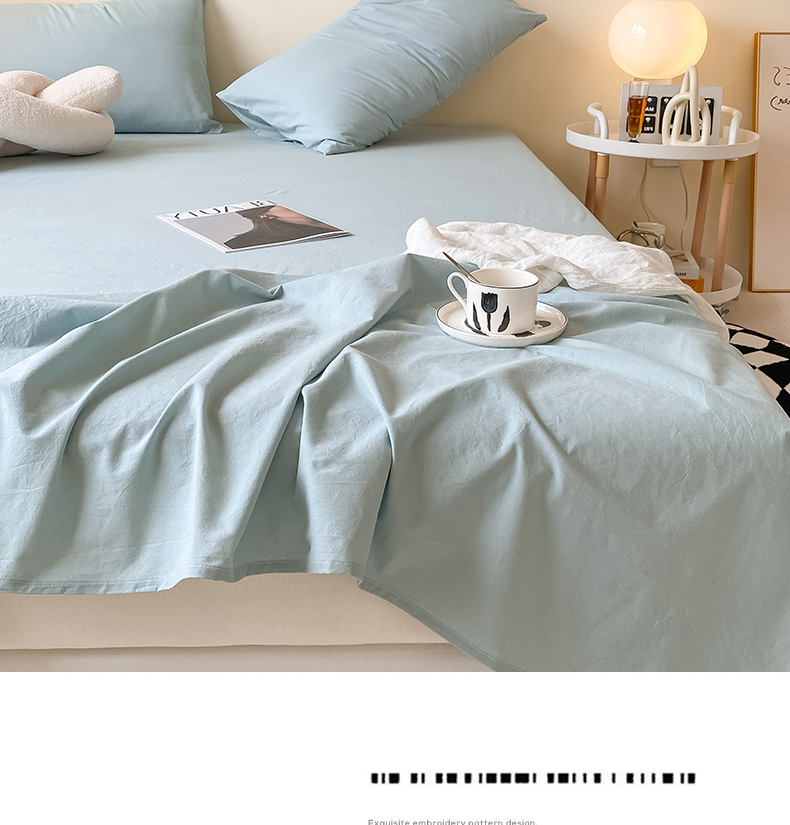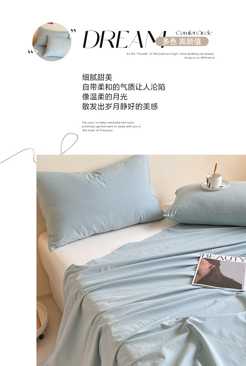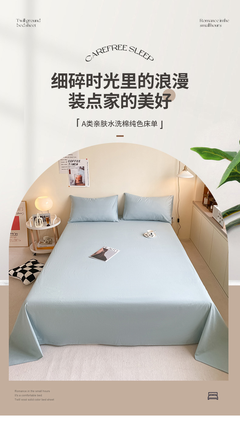 • 91家纺网 家纺一手货源 找家纺 眠帛家居 2024新款A类亲肤水洗棉纯色单品床单三件套 繁星蓝