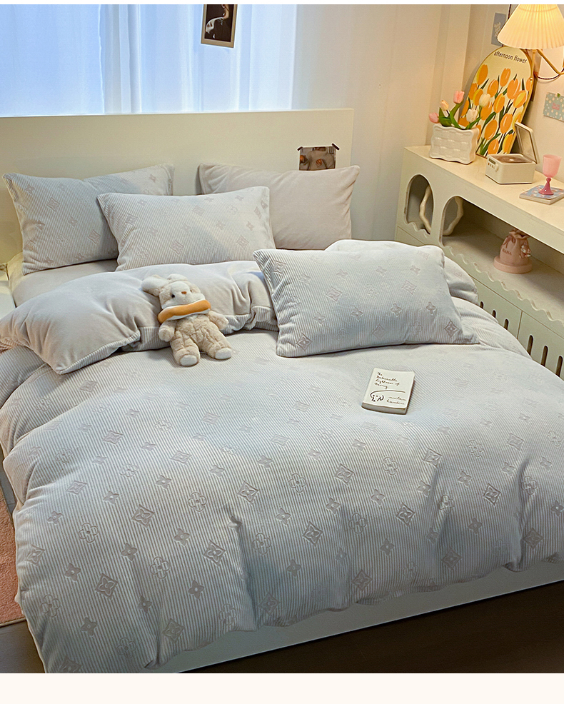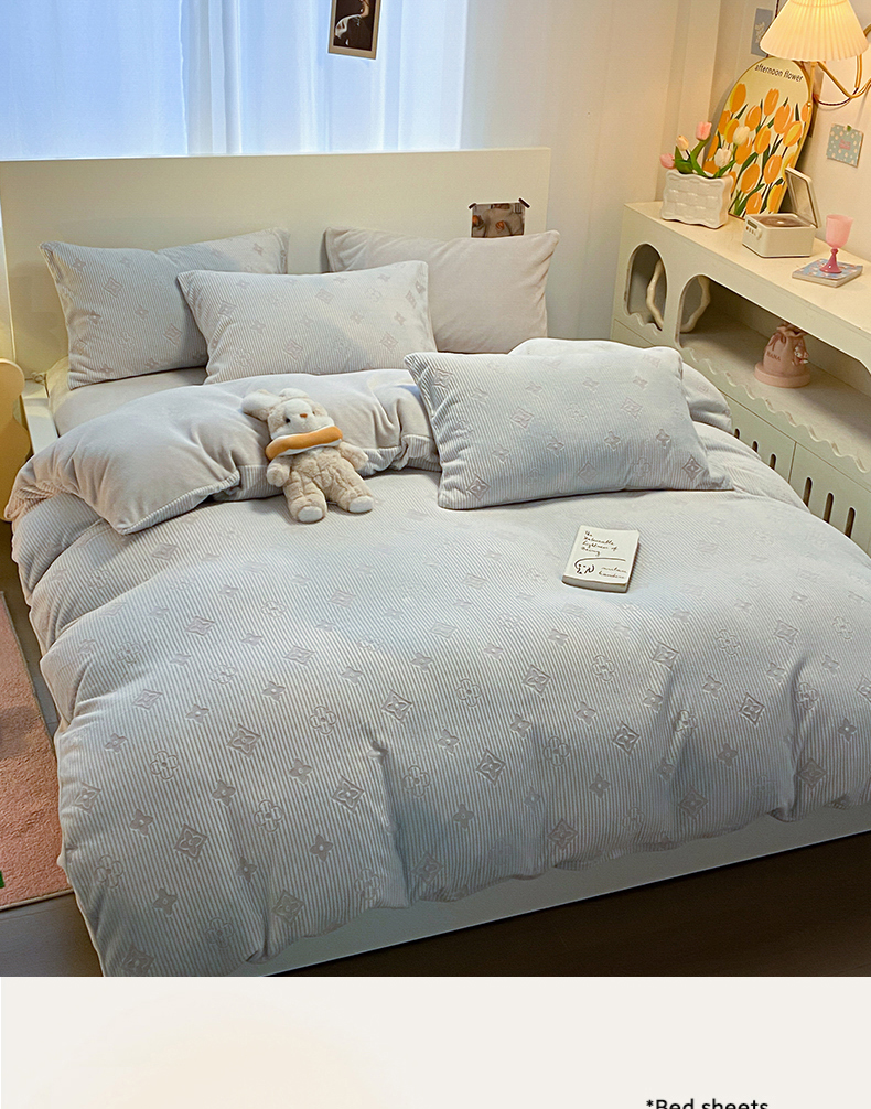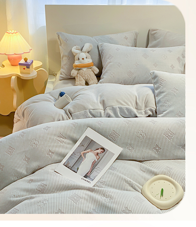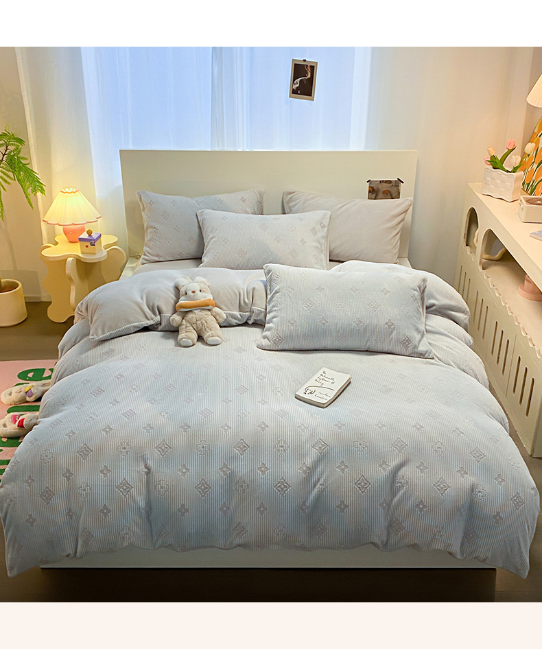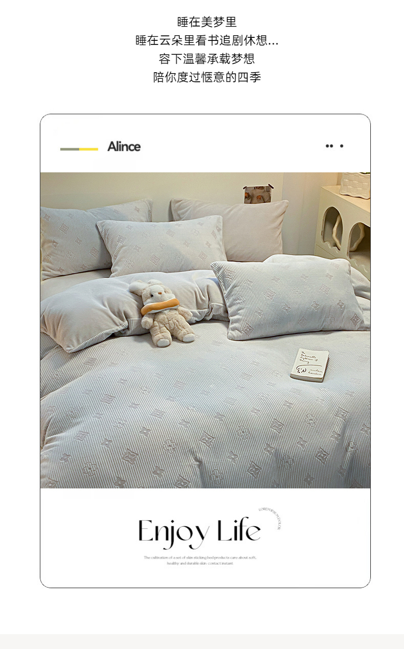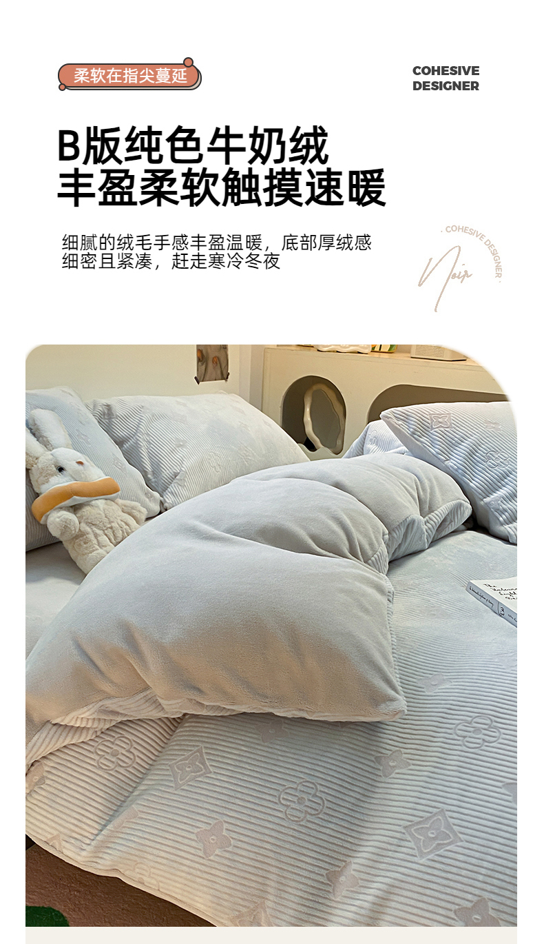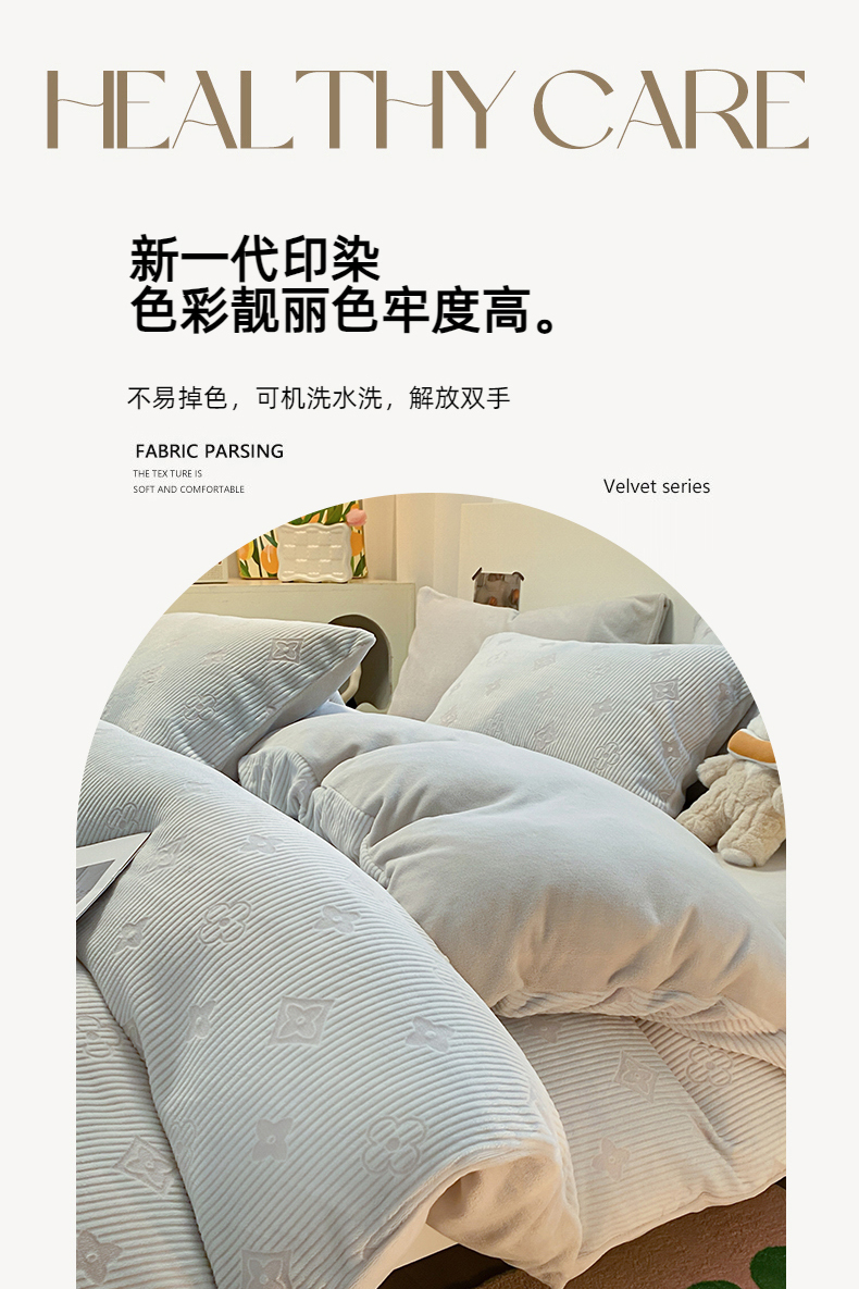 (总)呗旺鹿 2025新款A类高克重着色烂花雕花牛奶绒四件套,梦幻芭蕾卡其,梦幻芭蕾粉,梦幻芭蕾奶白,浅雾蔷薇粉,浅雾蔷薇兰,桃你欢喜粉