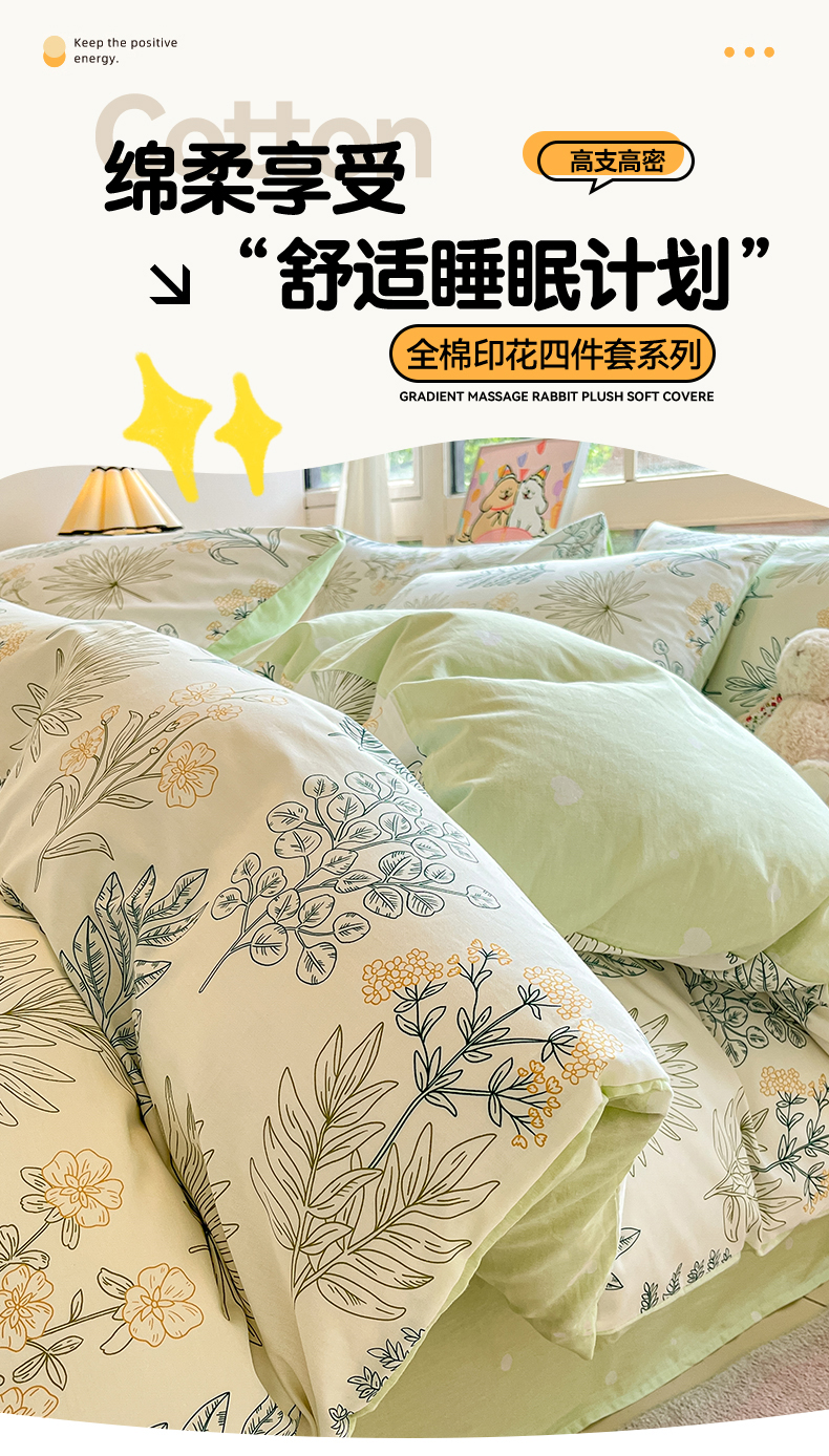 商品名称:本制 2024秋冬新款12868全棉印花四件套 香草