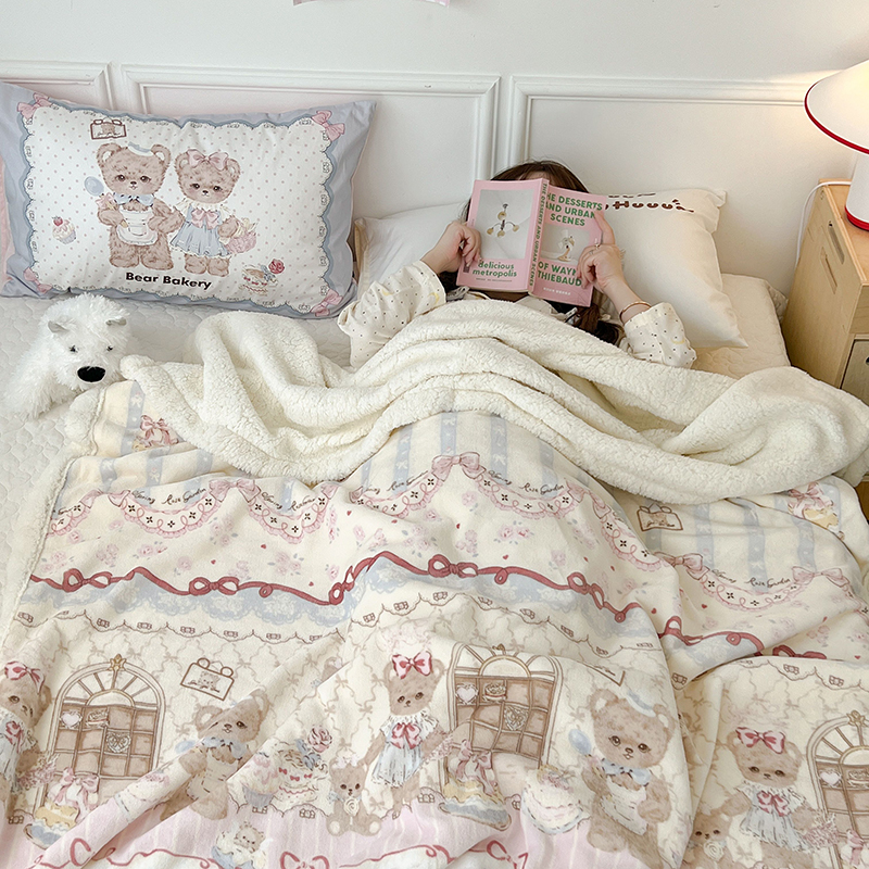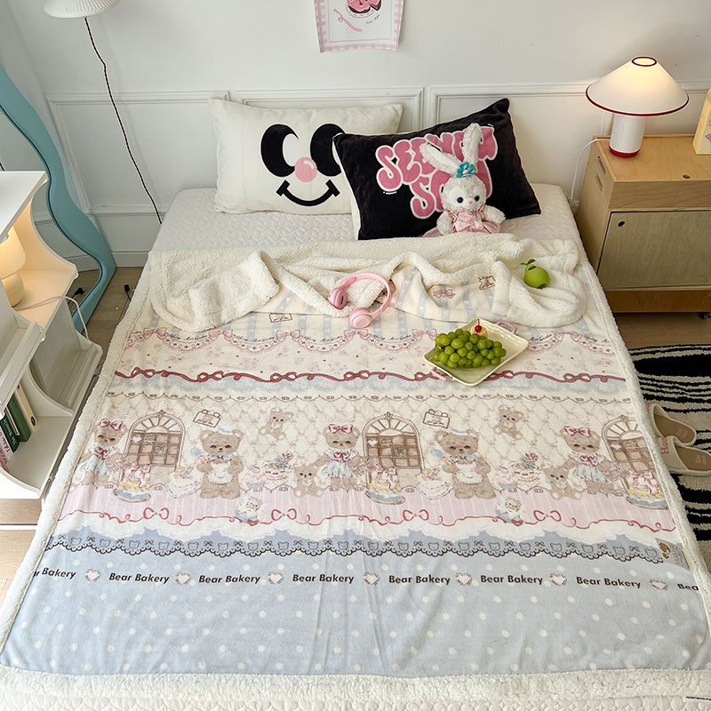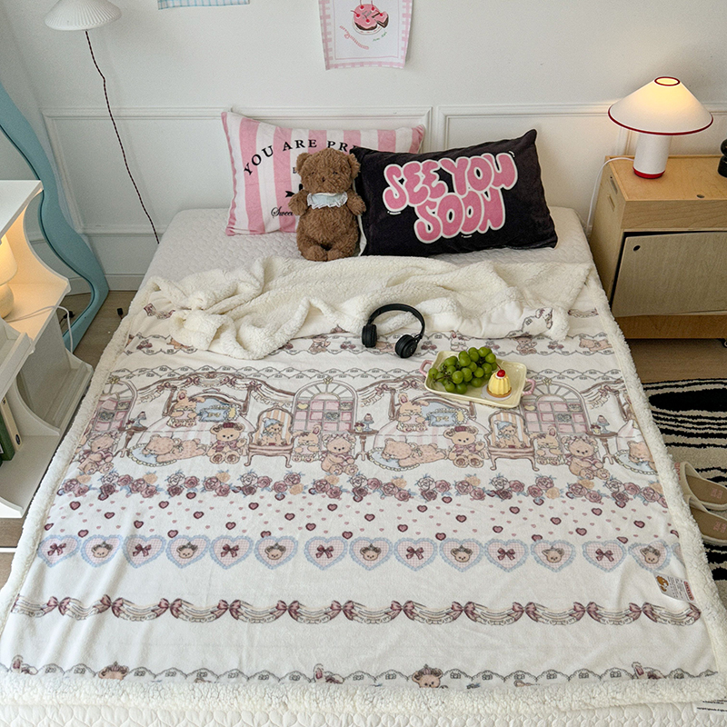 昔可家纺 2024新款羊羔绒牛奶绒毛毯系列(三)-场景二-洛丽塔系列 小熊玩偶屋