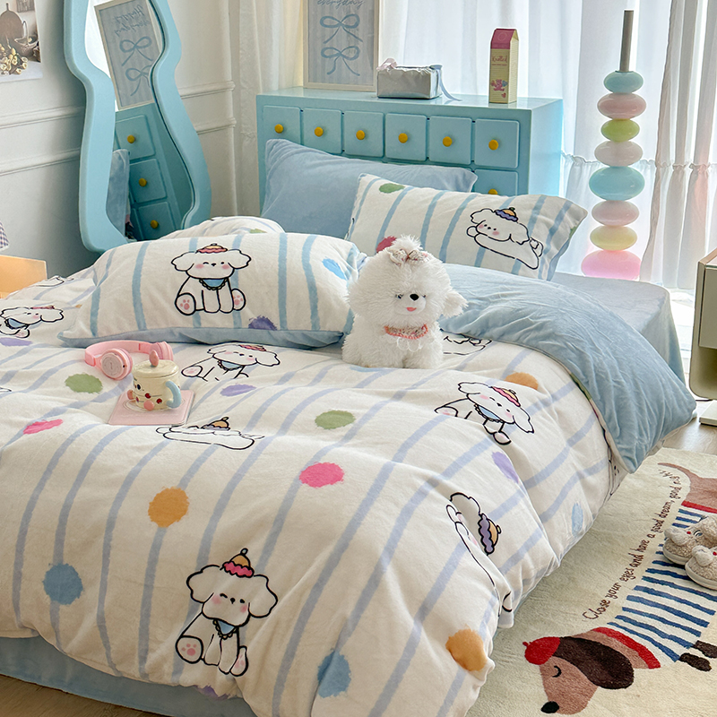 昔可家纺 2024新款印花牛奶绒四件套系列-卡通系列 萌宠伙伴