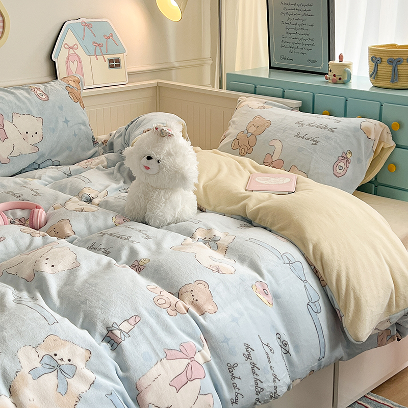 昔可家纺 2024新款印花牛奶绒四件套系列-卡通系列 小熊礼物