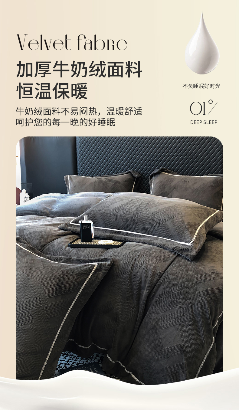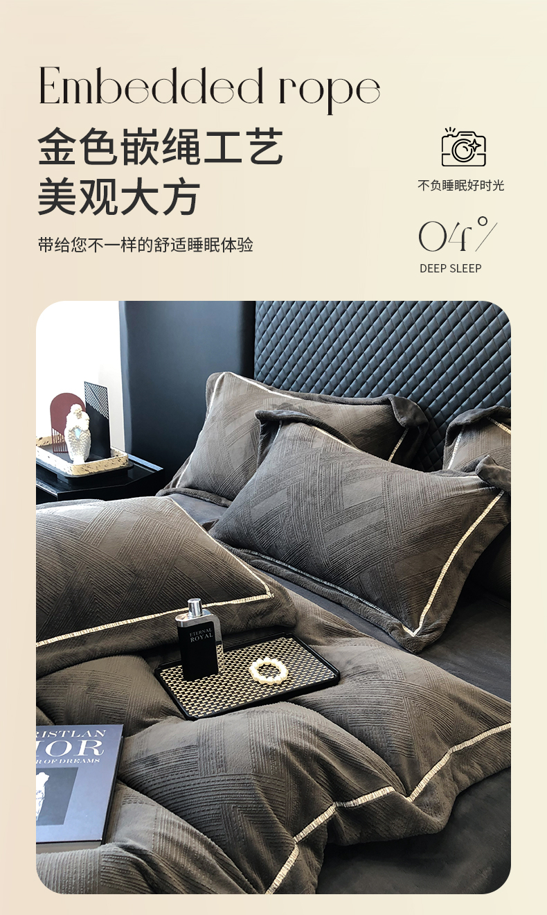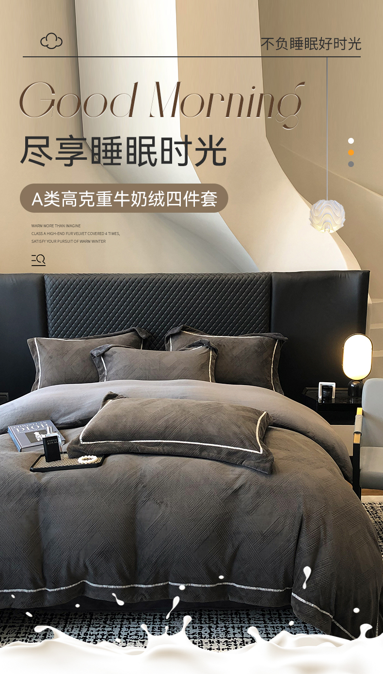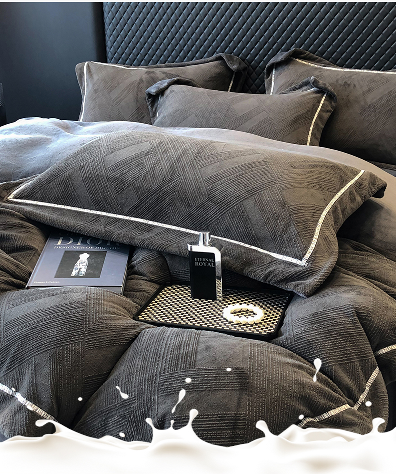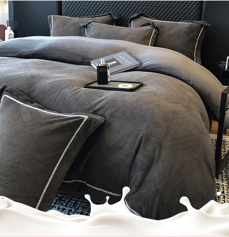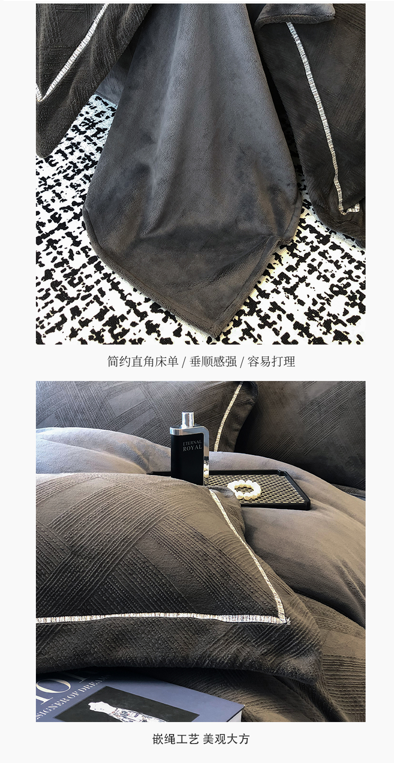商品名称:家居1号 2024新款230克全消光牛奶绒立体烂花四件套-奥地利 奥地利-高级灰