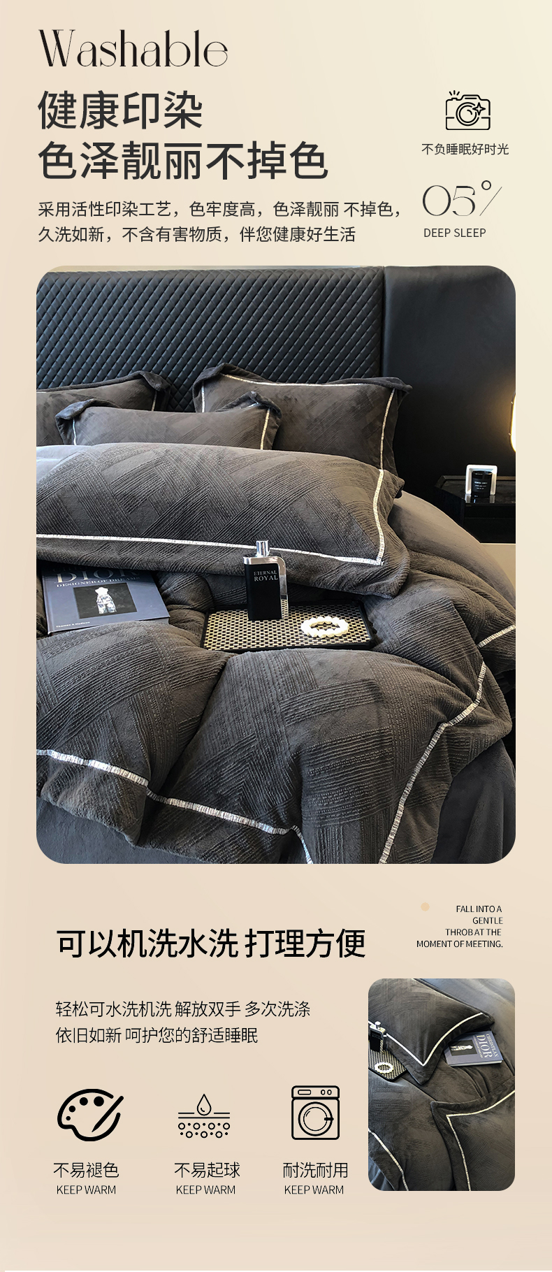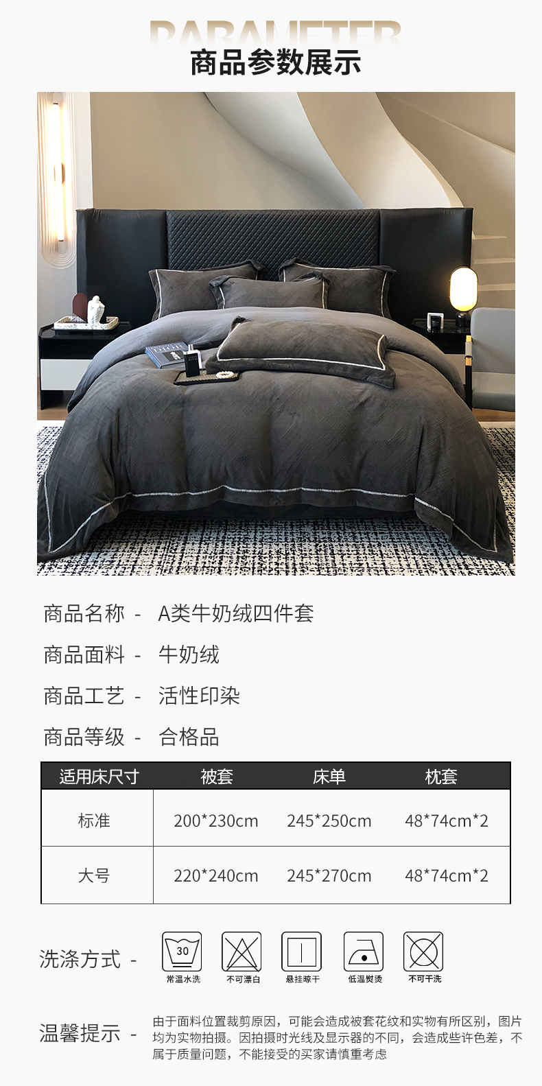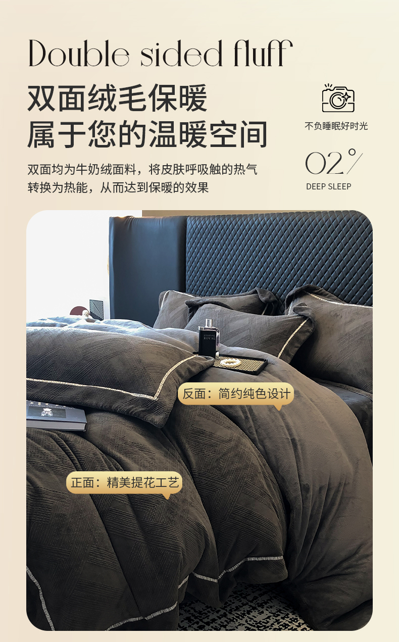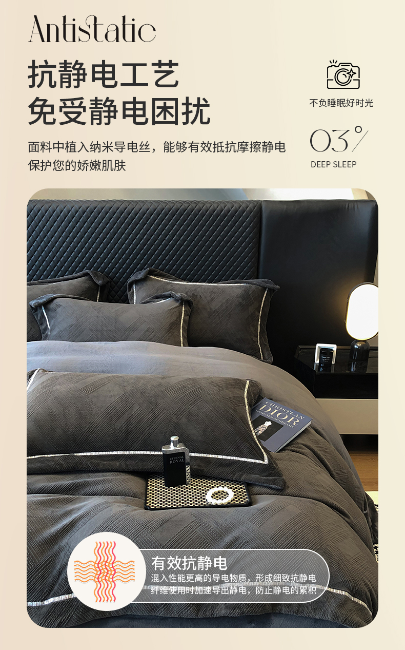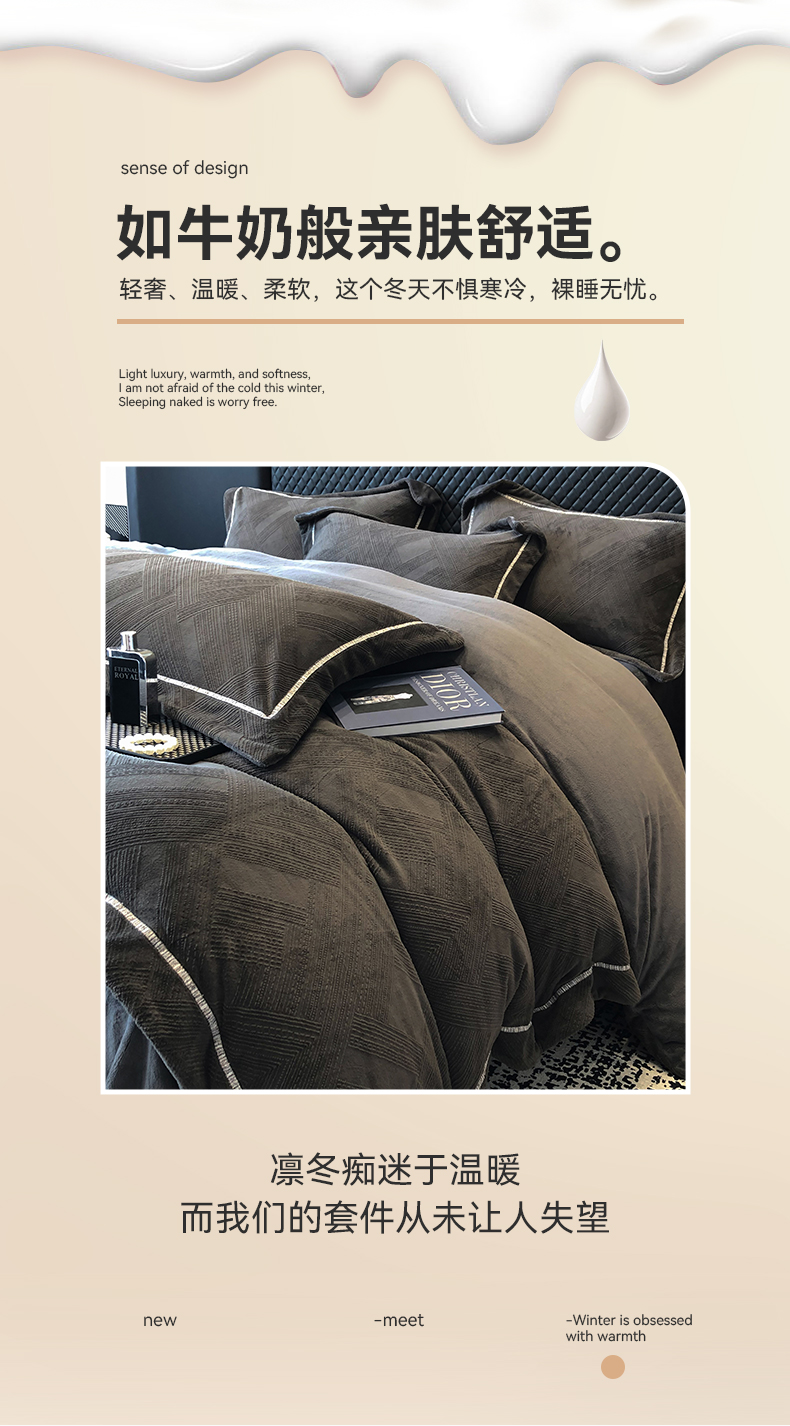商品名称:家居1号 2024新款230克全消光牛奶绒立体烂花四件套-奥地利 奥地利-高级灰