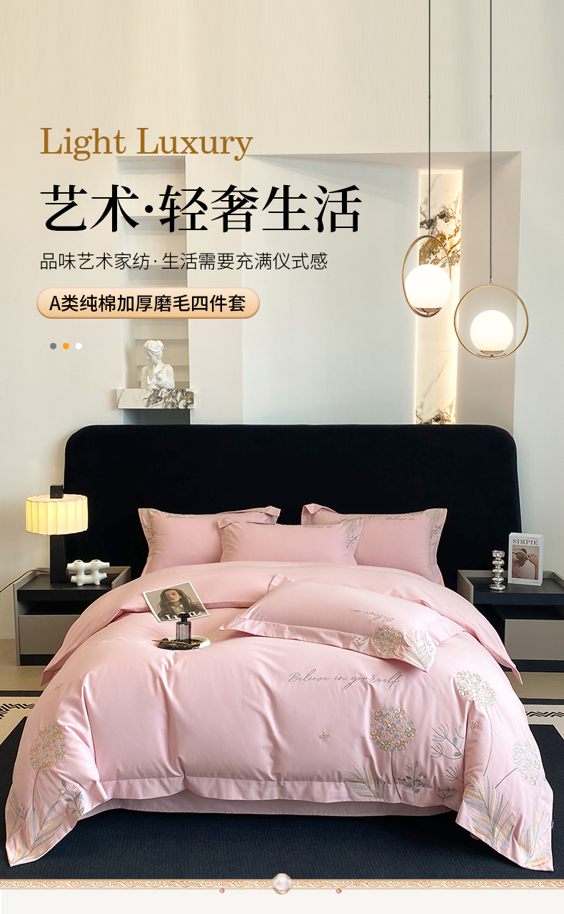 (总)家居1号家纺 2025新款全消光牛奶绒刺绣圣玛丽四件套,圣玛丽-粉豆沙,圣玛丽-果绿,圣玛丽-晴蓝,圣玛丽-绅士灰,圣玛丽-香槟金