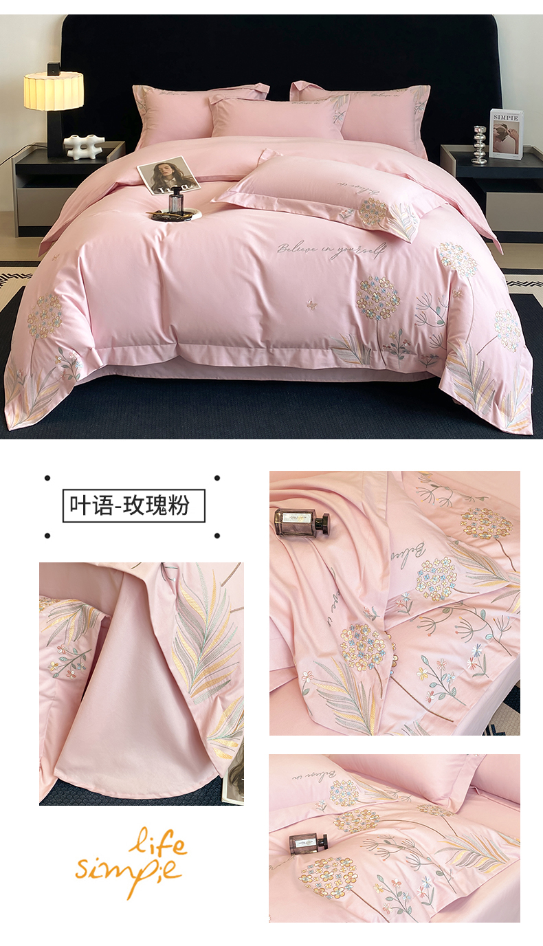 商品名称:家居1号 2024新款纯棉加厚磨毛四件套-叶语 叶语-玫瑰粉