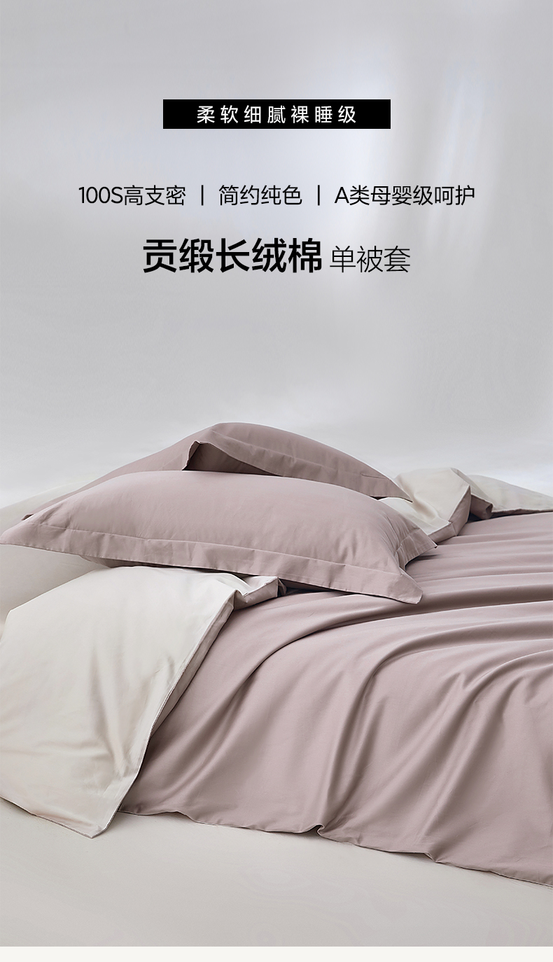 当前位置: 91家纺网 > 商品网购 > 床上用品 > 被套 > 轩和家居 2024新款A类50S贡缎长绒棉单被套系列 丹麦紫+迷雾灰