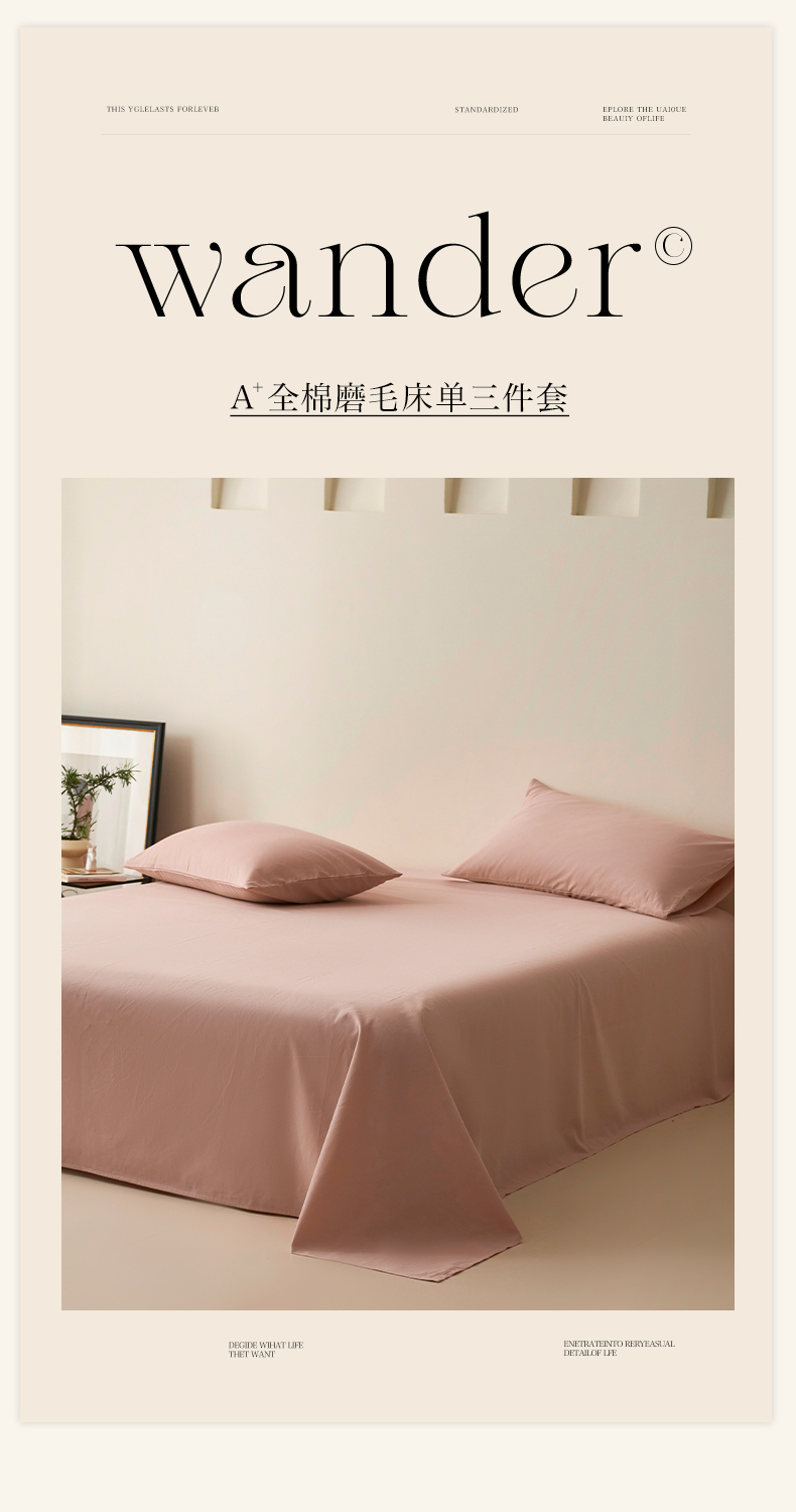 当前位置: 91家纺网 > 商品网购 > 床上用品 > 床单 > 2024新款全棉加厚磨毛纯色单床单系列 浅豆沙