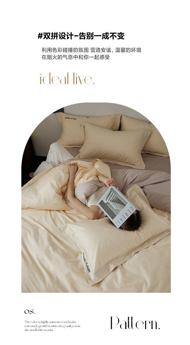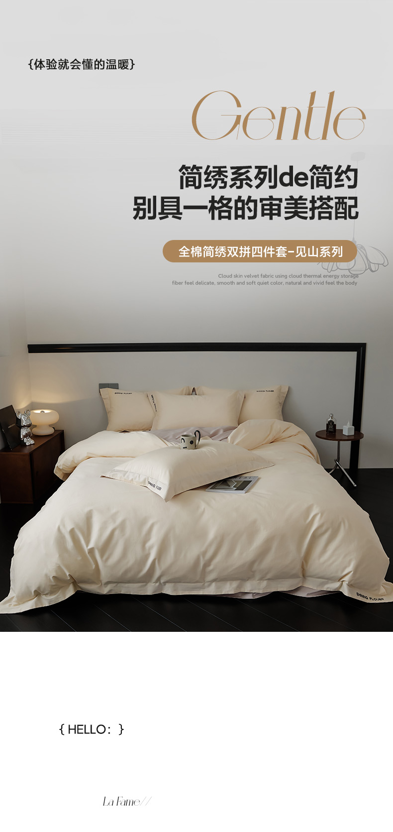 当前位置: 91家纺网 > 商品网购 > 床品套件 > 四件套 > 全棉普通四件套 > EH家居 2024新款见山系列全棉简绣双拼四件套 见山-柔蜜