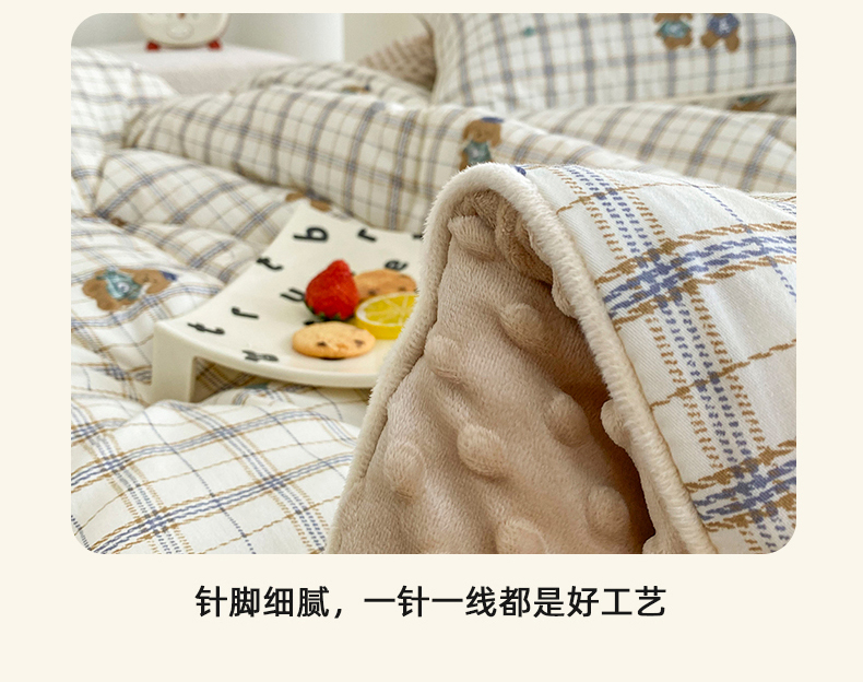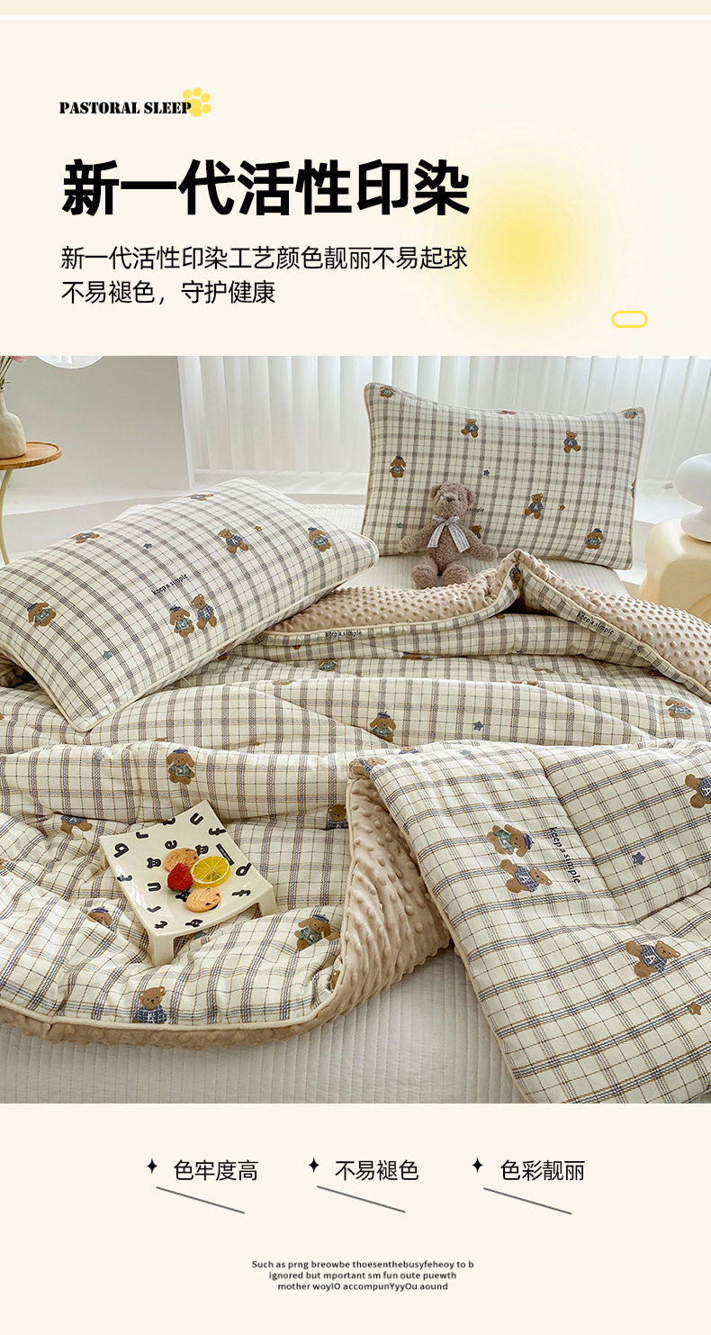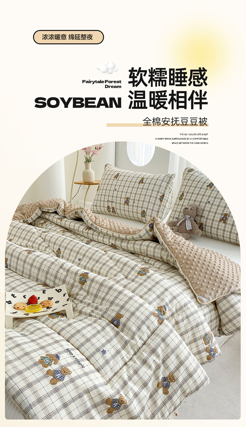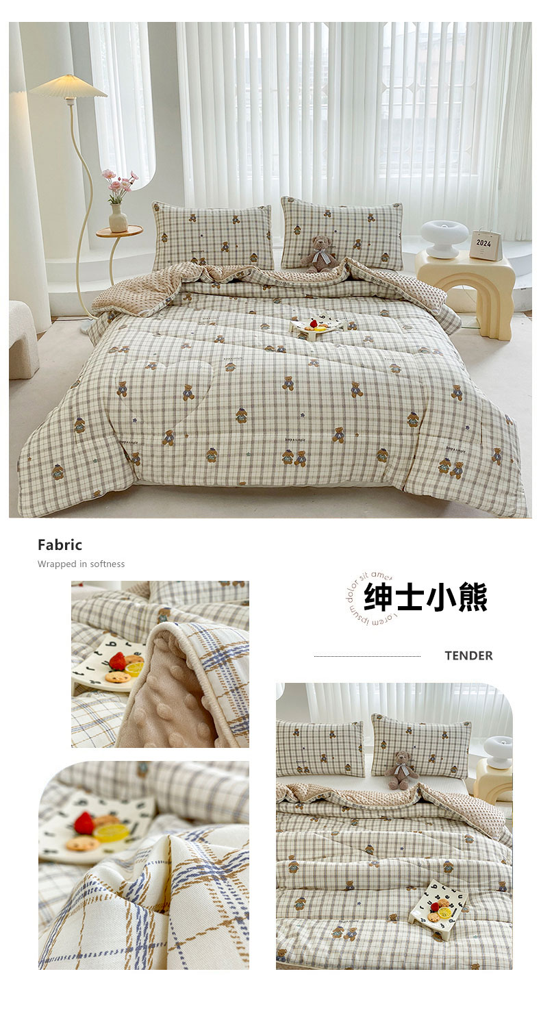 商品名称:青螺家纺 2025高密全棉嵌绳宝宝绒豆豆被春秋被冬被 一圈踩棉 四角不跑棉 直播 绅士小熊