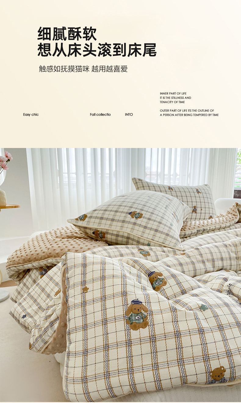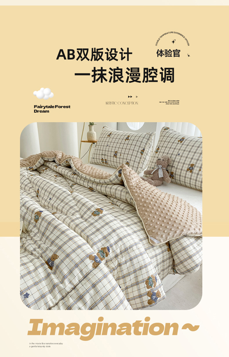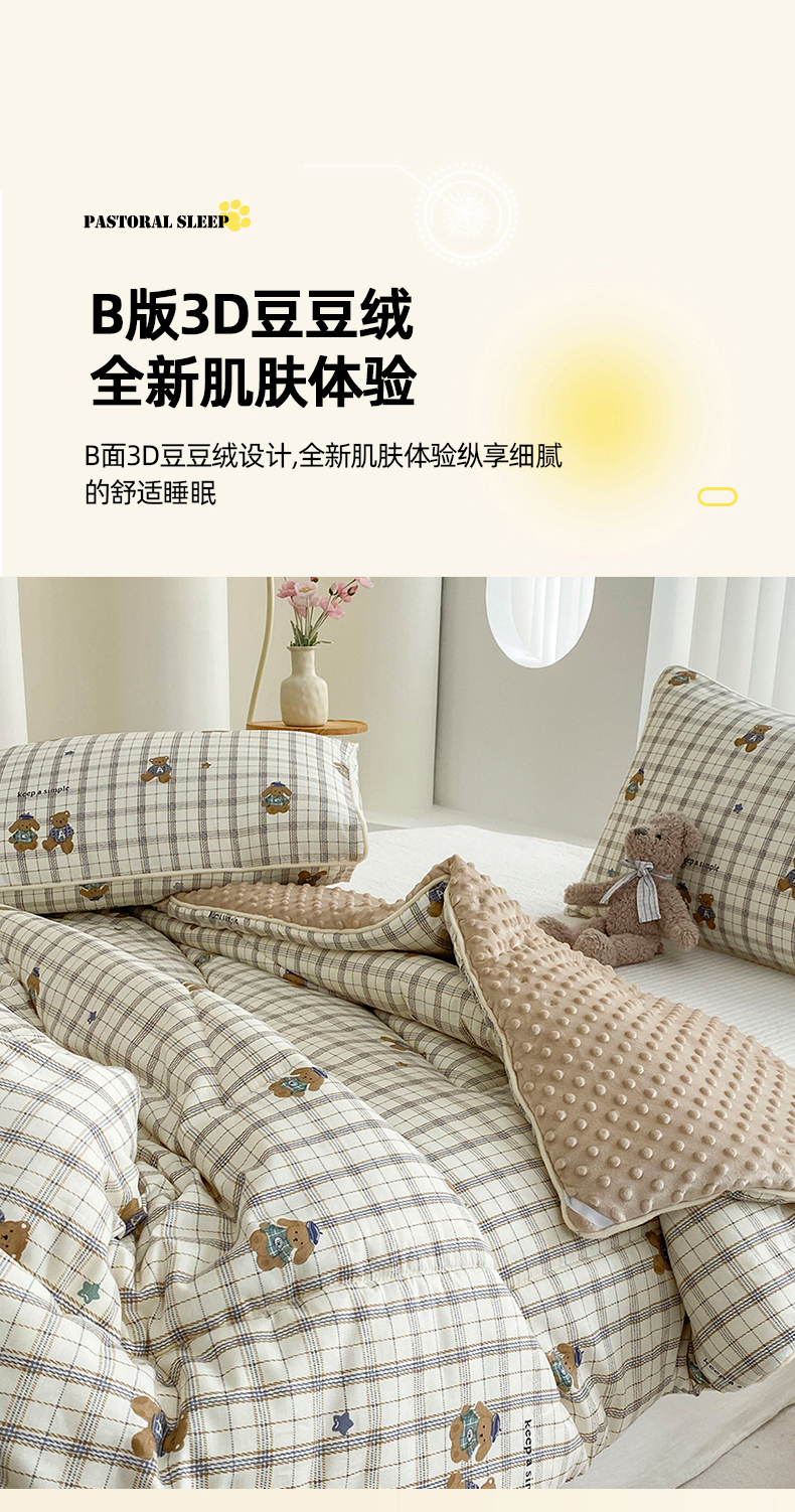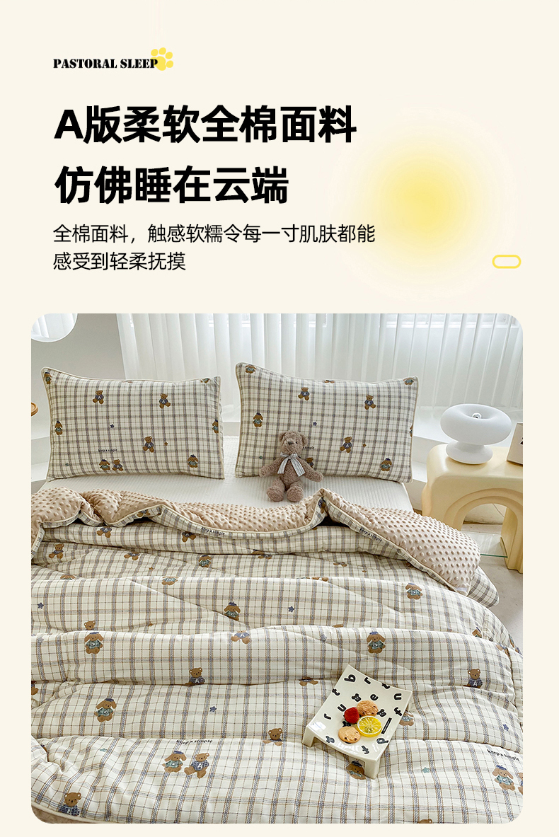 商品名称:青螺家纺 2025高密全棉嵌绳宝宝绒豆豆被春秋被冬被 一圈踩棉 四角不跑棉 直播 绅士小熊
