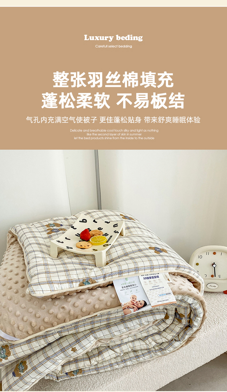 青螺家纺 2025高密全棉嵌绳宝宝绒豆豆被春秋被冬被 一圈踩棉 四角不跑棉 直播 绅士小熊