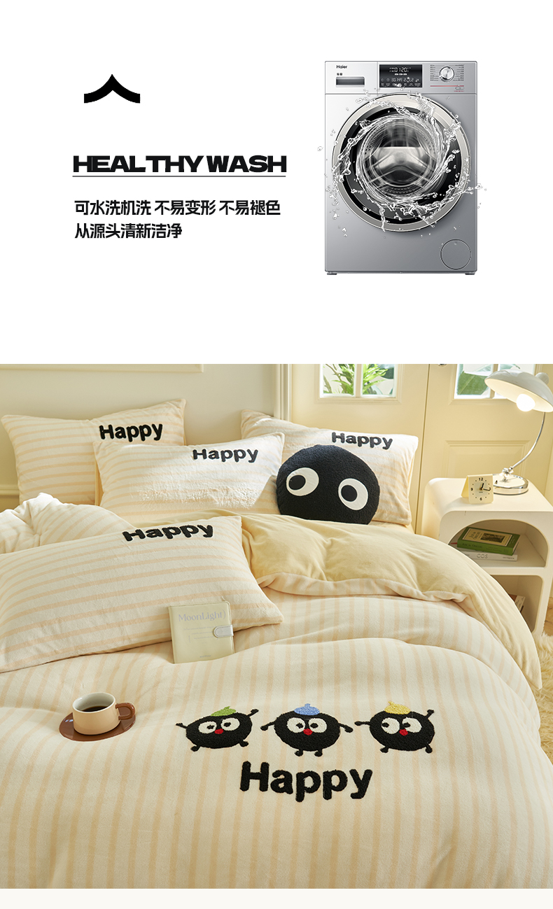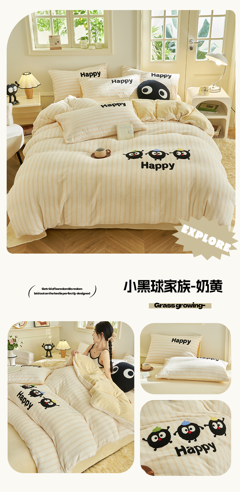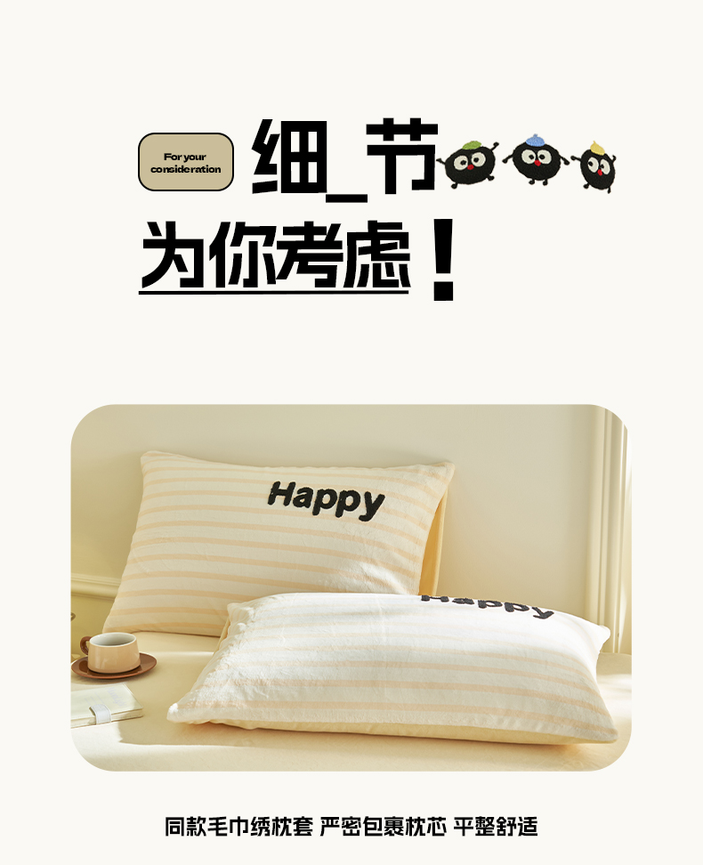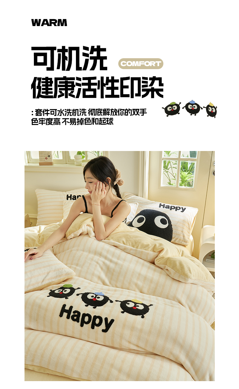 当前位置: 91家纺网 > 商品网购 > 床品套件 > 四件套 > 牛奶绒四件套 > 晨曦家纺 2024新款卡通毛巾绣牛奶绒卡通四件套 小黑球家族-奶黄