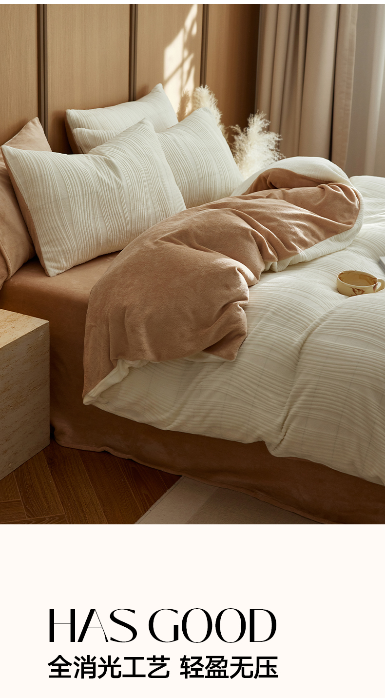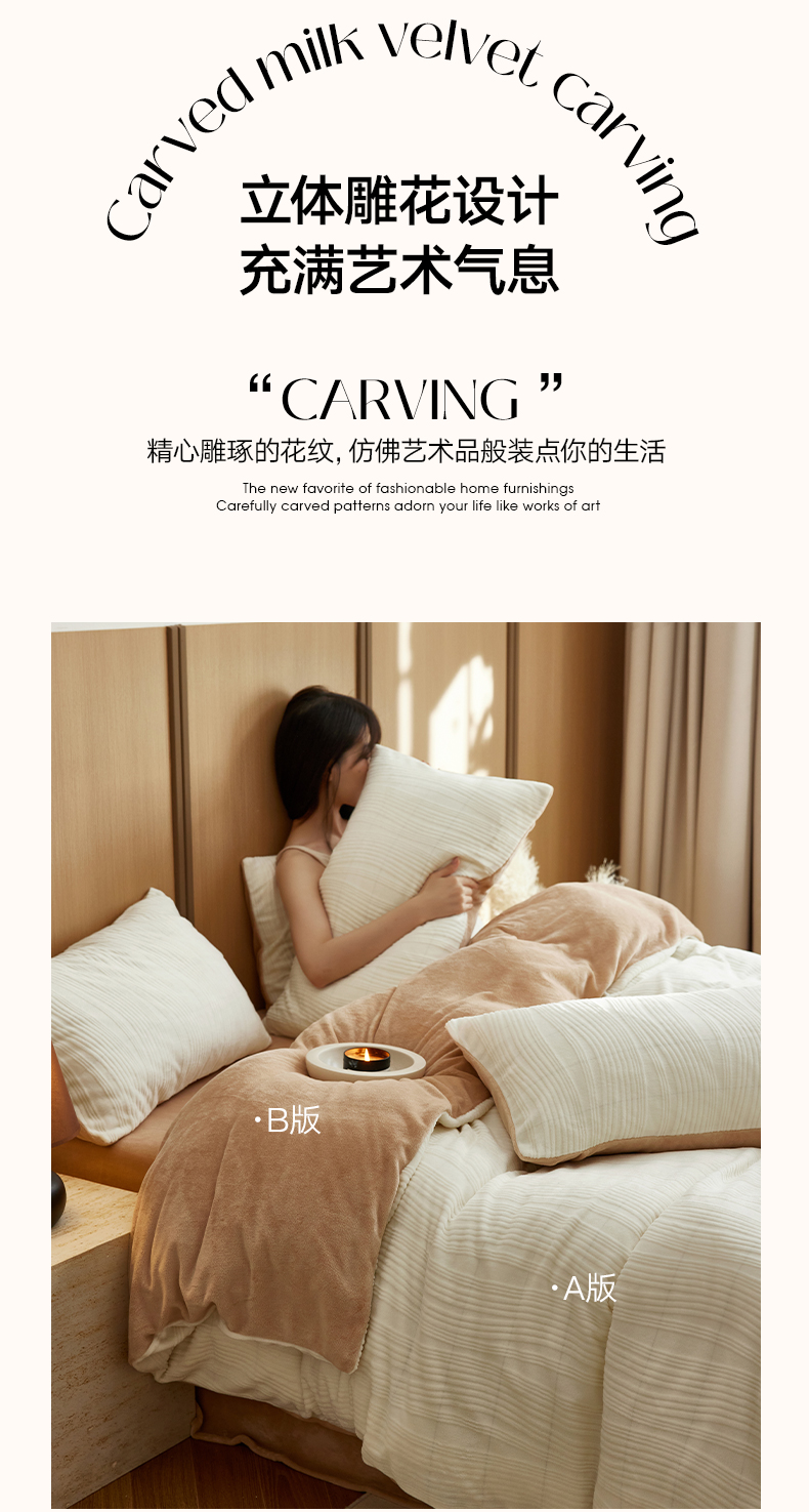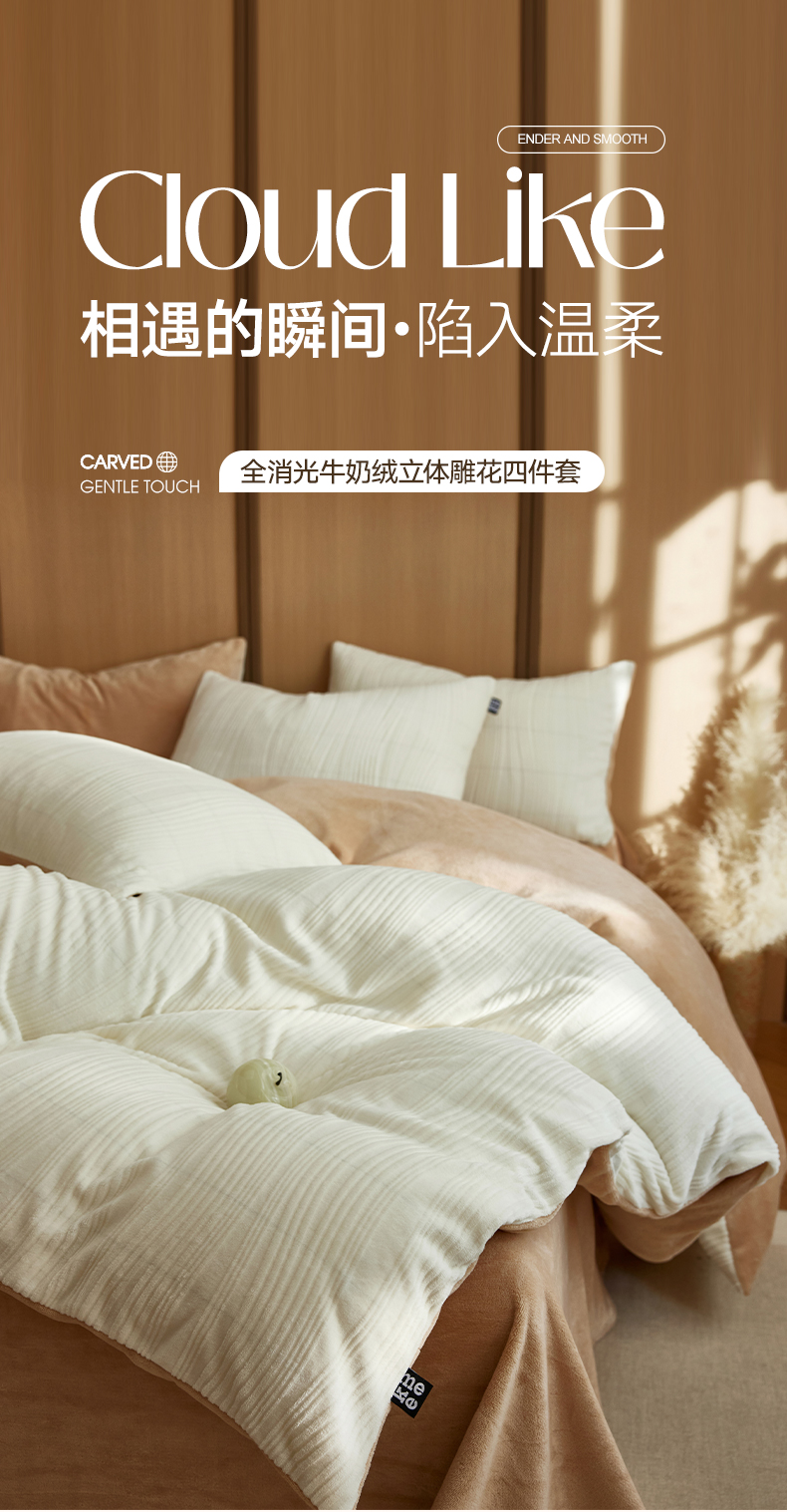 当前位置: 91家纺网 > 商品网购 > 床品套件 > 四件套 > 牛奶绒四件套 > 风向标家纺 2024新款A类全消光牛奶绒立体雕花四件套 提花绒曲-暖云咖