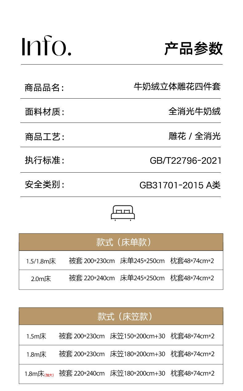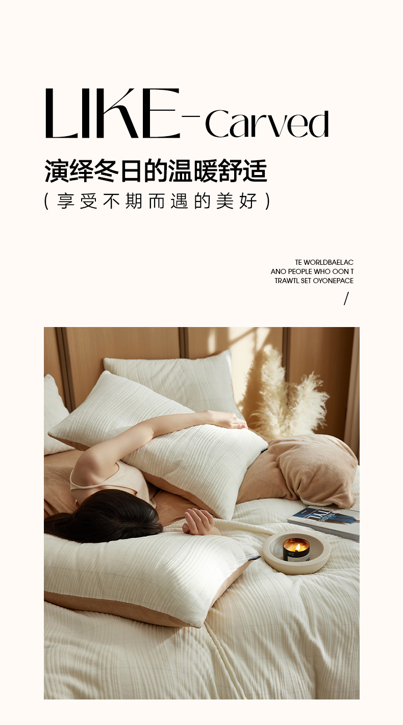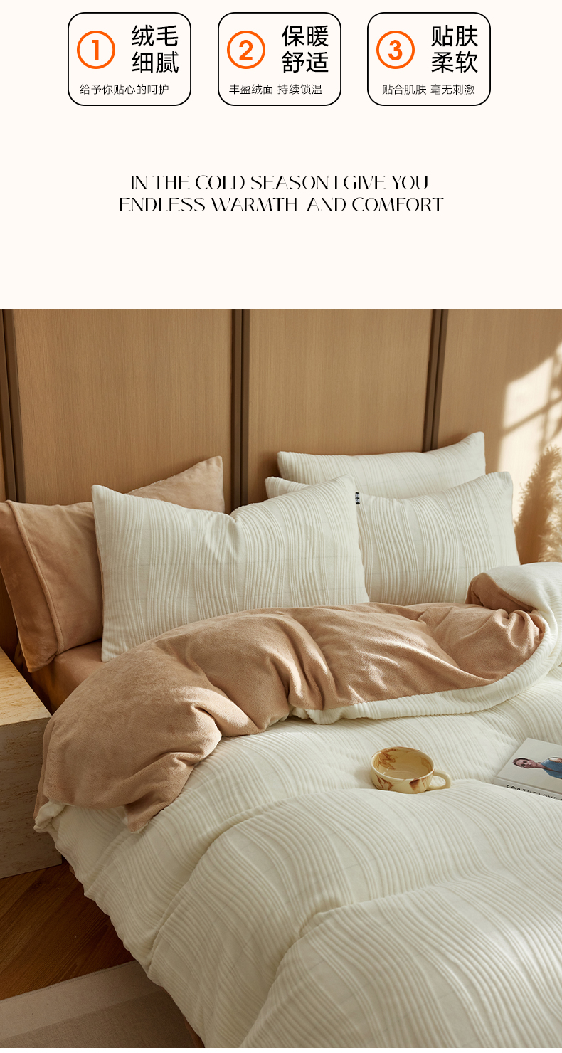 当前位置: 91家纺网 > 商品网购 > 床品套件 > 四件套 > 牛奶绒四件套 > 风向标家纺 2024新款A类全消光牛奶绒立体雕花四件套 提花绒曲-暖云咖