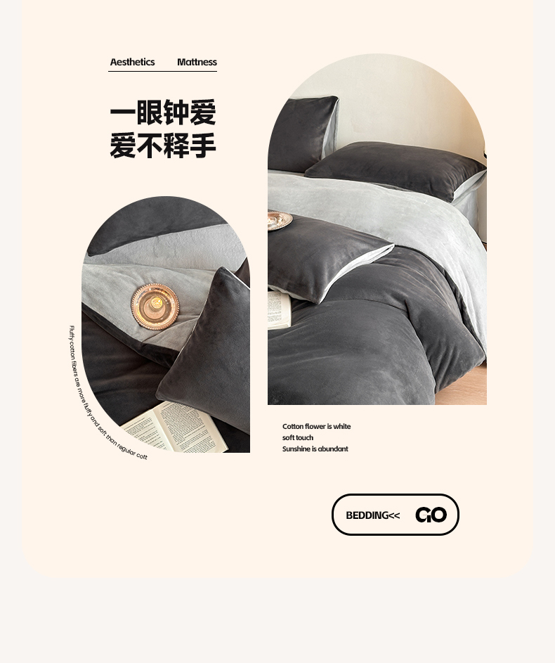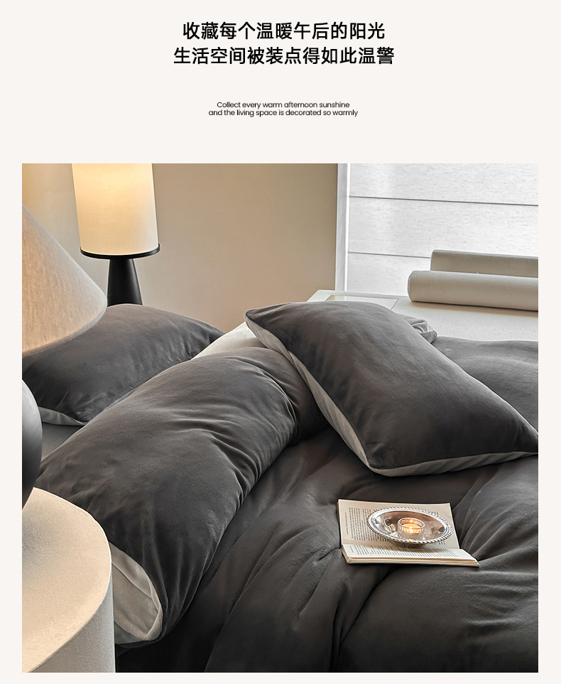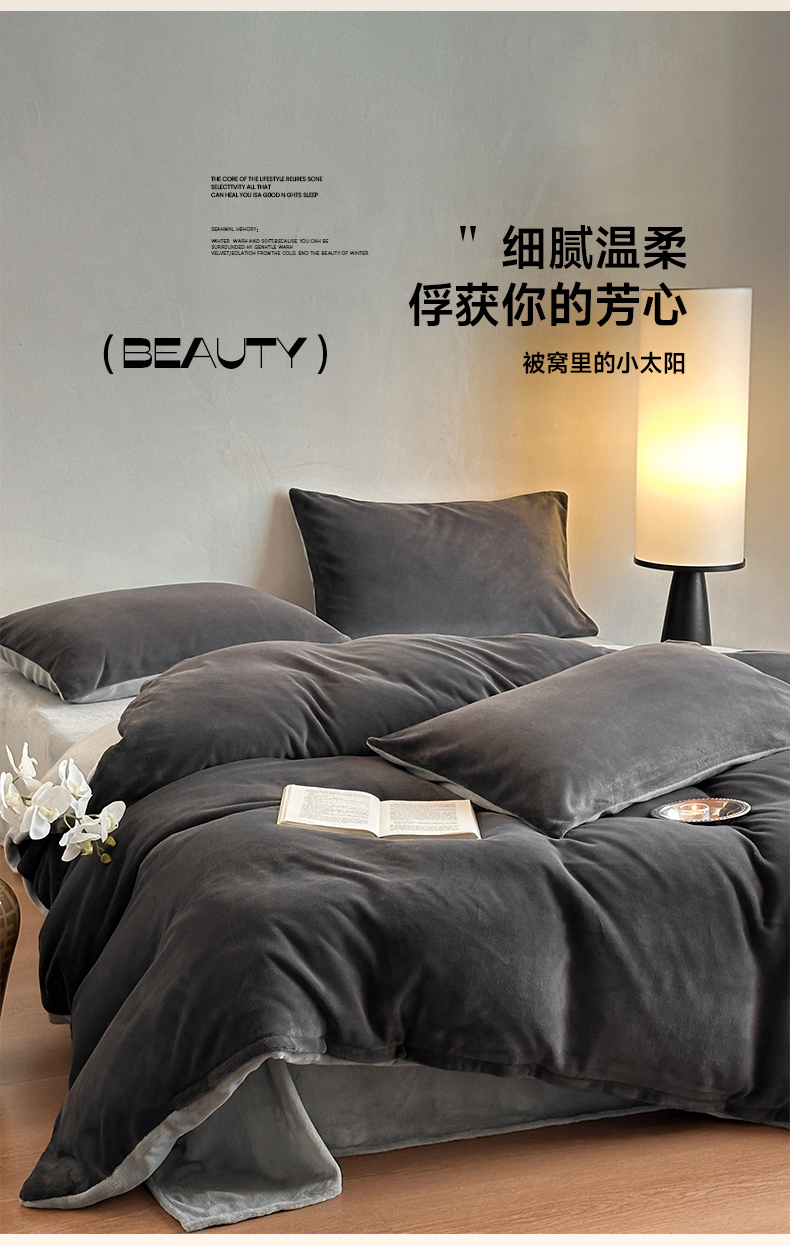 商品名称:寐眠 2024新款牛奶绒纯色双拼四件套 暗夜魅影