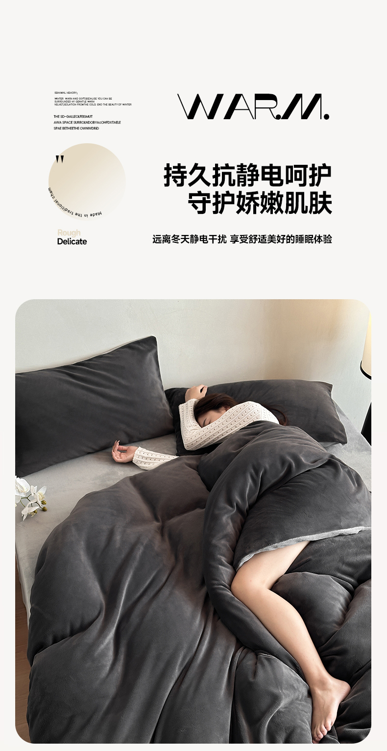 (总)寐眠 2025新款A类立体雕花牛奶绒四件套-系列二,灰韵暖叶,暖棕雅致,青柠暖枝,柔粉暖絮