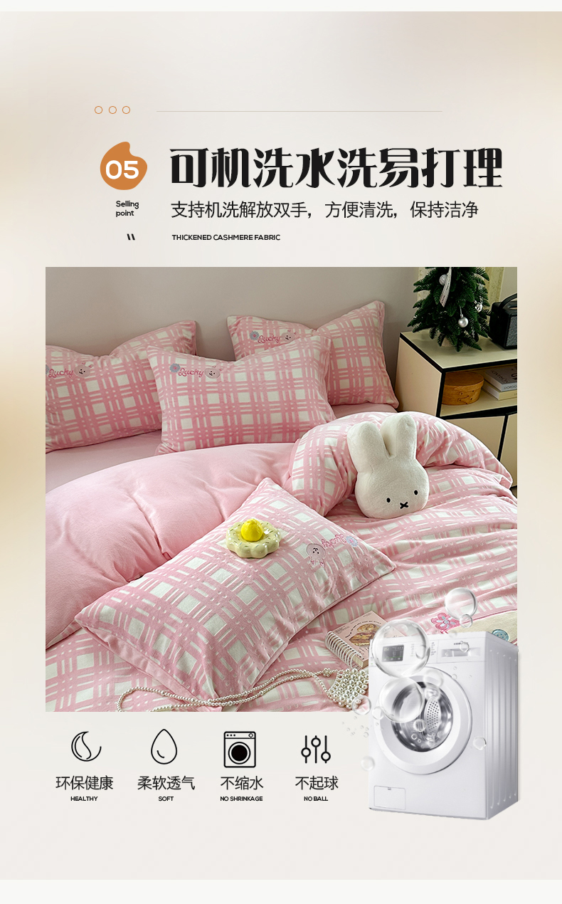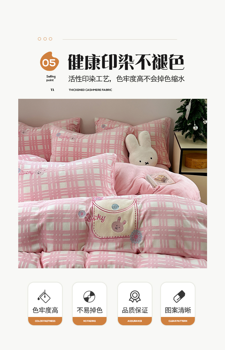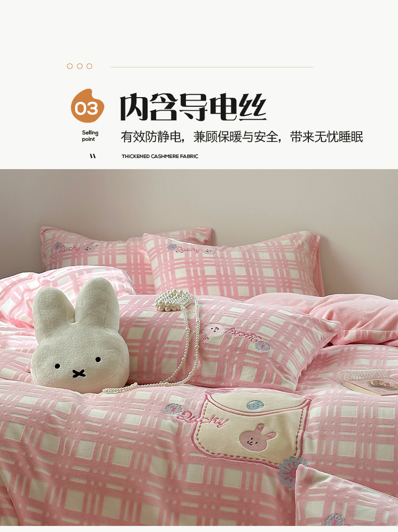 桃子家居 2024新款A类ins博主小红书刺绣贴布绣立体高级工艺烂花雕花牛奶绒系列四件套 绒刺绣-可甜兔