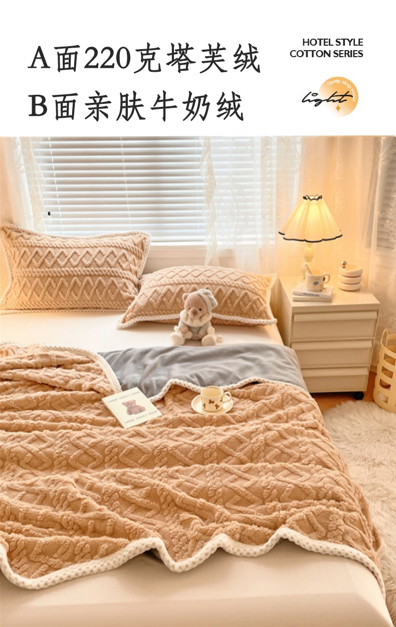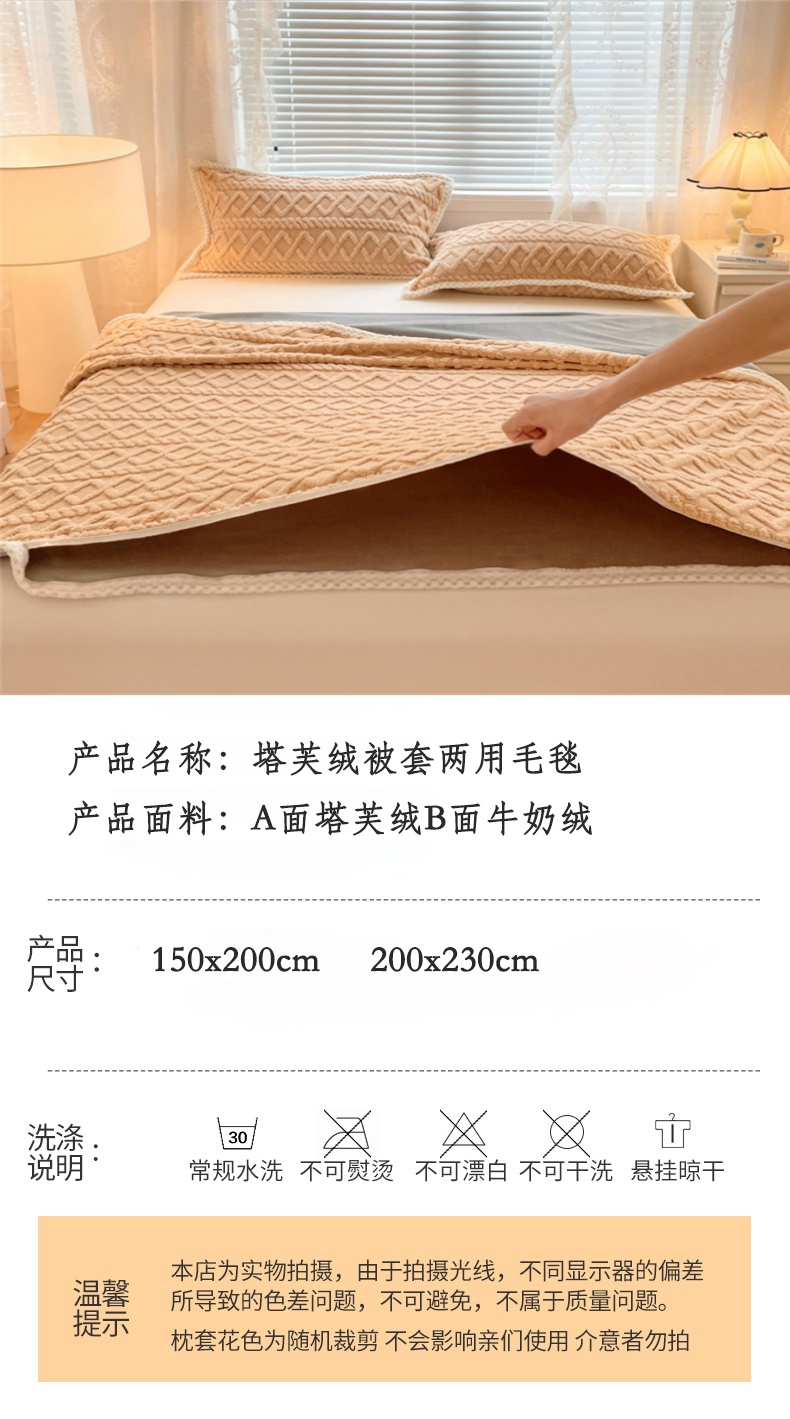 商品名称:梦舒羽 2025新款220克塔芙绒被套两用牛奶绒毛毯 优雅咖