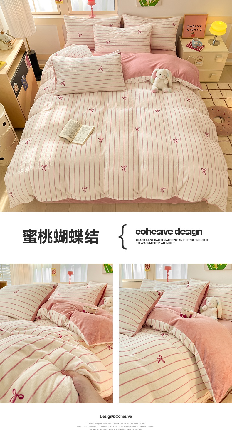 (总)寐眠 2025新款A类立体雕花牛奶绒四件套-系列一,粉暖舒然,花绒雅梦,暖咖轻奢,浅紫暖奢