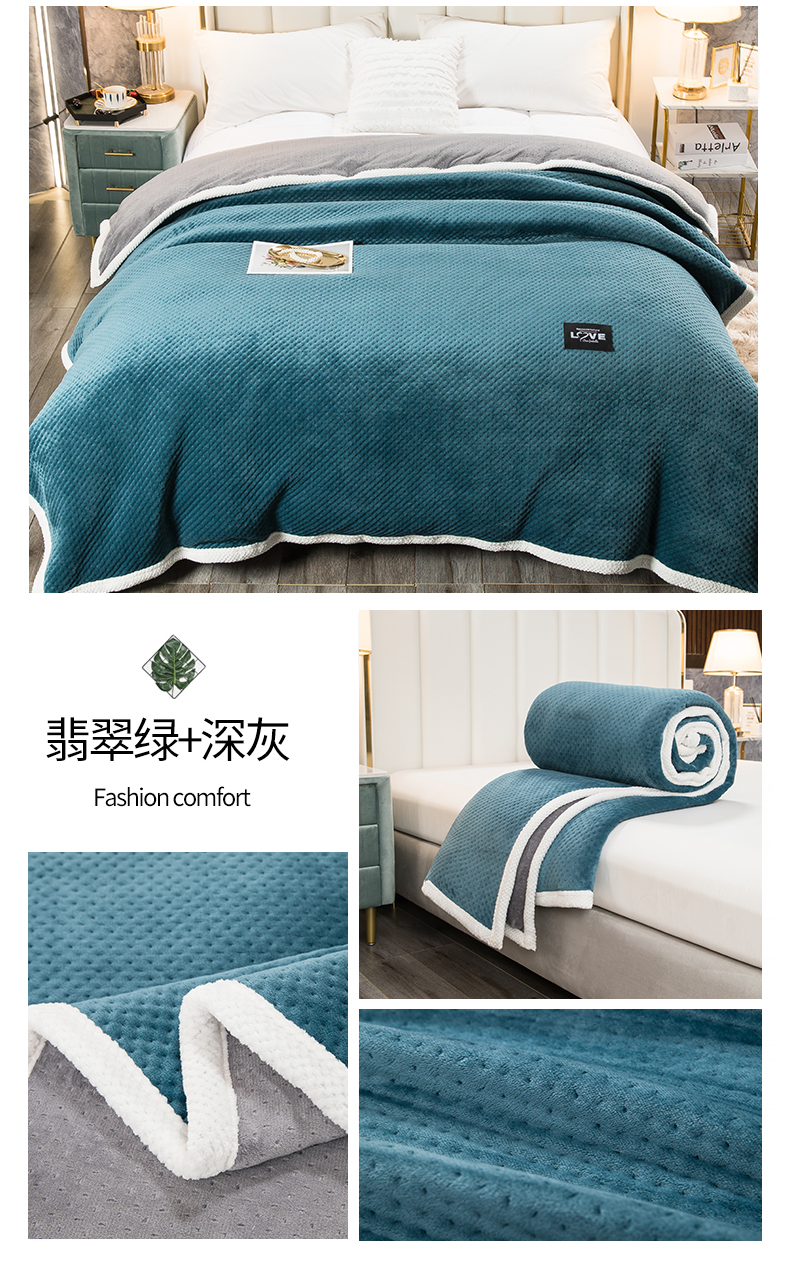 商品名称:宅部落 2024新款法莱绒牛奶绒毯三层夹棉多功能毛毯 翡翠绿+深灰