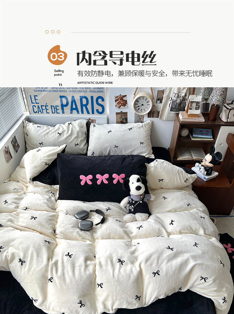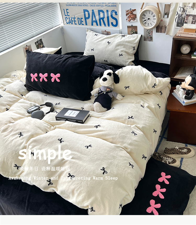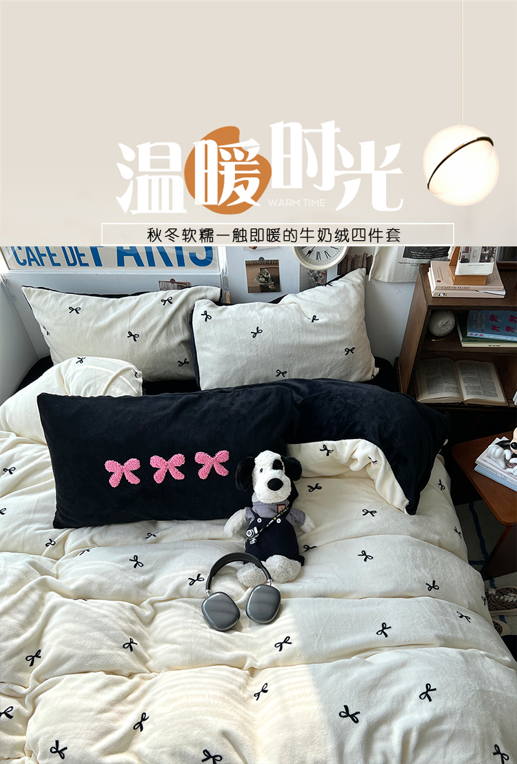 (总)原素 2024新款蝴蝶结小印花毛巾绣混搭牛奶绒四件套,小印花蝴蝶结-黑,小印花蝴蝶结-粉,小印花蝴蝶结-咖,小印花蝴蝶结-紫
