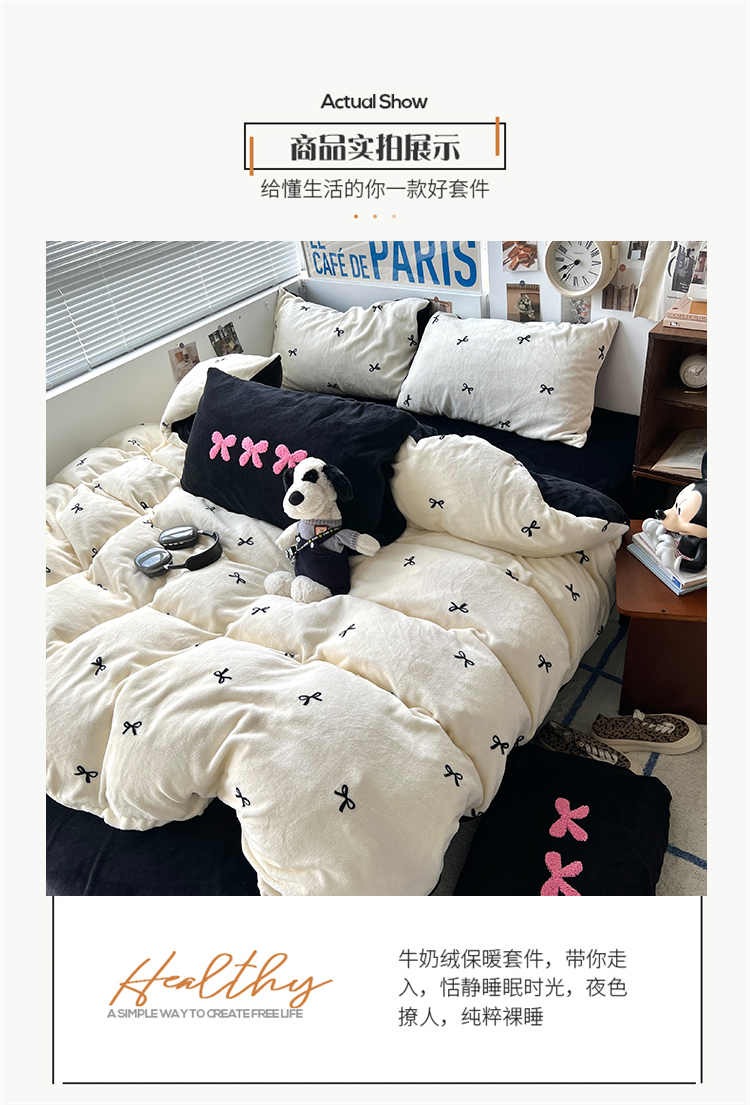 (总)原素 2025秋冬少女心印花A类200克双拼加厚牛奶绒四件套,星星蝴蝶结,彩条蝴蝶结,草莓拉拉布,狗狗聚会,复古蝴蝶结,羞羞萌宠,格纹猫咪酱,爱心富贵狗,草莓维尼,粉粉草莓,花朵胡萝卜,考拉的家