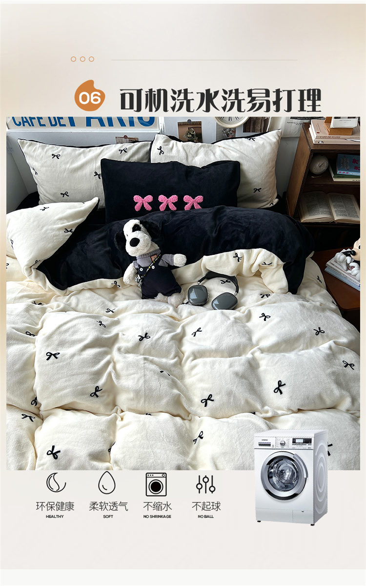 (总)原素 2025秋冬A类水洗棉+200克牛奶绒四件套,围巾狗狗-绒,红格喵喵-绒,动物音乐会-绒,巧克力小熊-绒,奶芙猫猫-绒,萌宠喵喵-绒,红格KT酱-绒,喵喵家族-绒