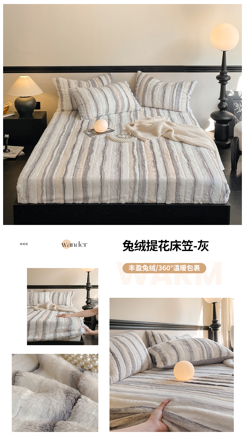 商品名称:宜代光年 2024新款兔绒提花床笠系列 兔绒提花床笠-灰