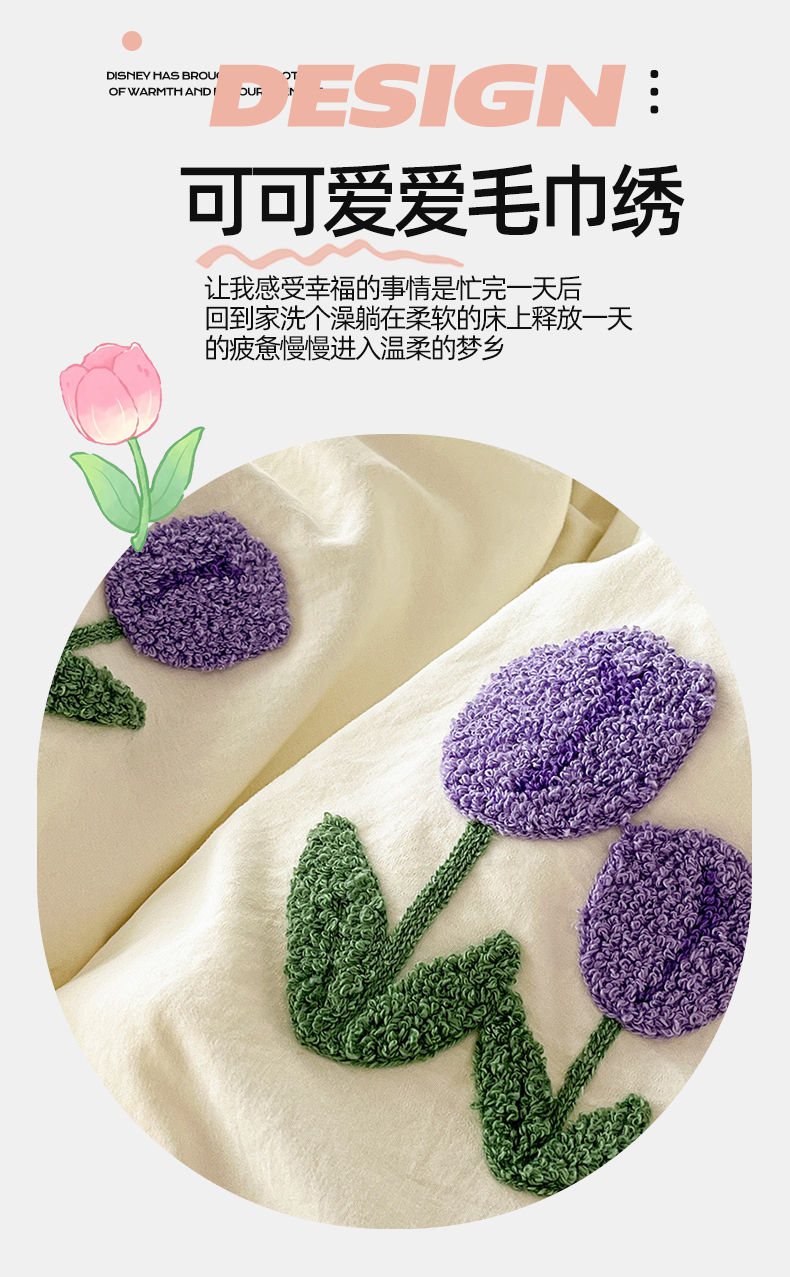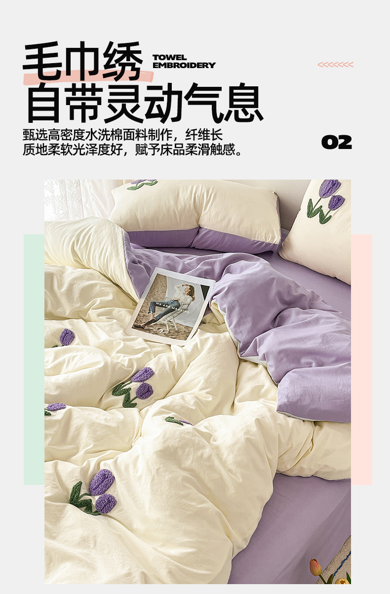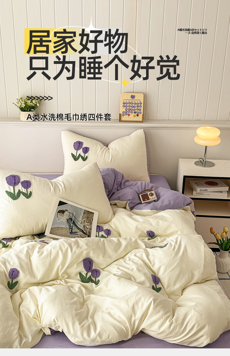 当前位置: 91家纺网 > 商品网购 > 床品套件 > 四件套 > 水洗棉四件套 > 多品家纺 2024新款水洗棉毛巾绣四件套郁见花海 郁见花海 白+紫