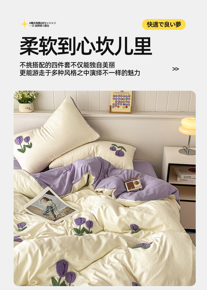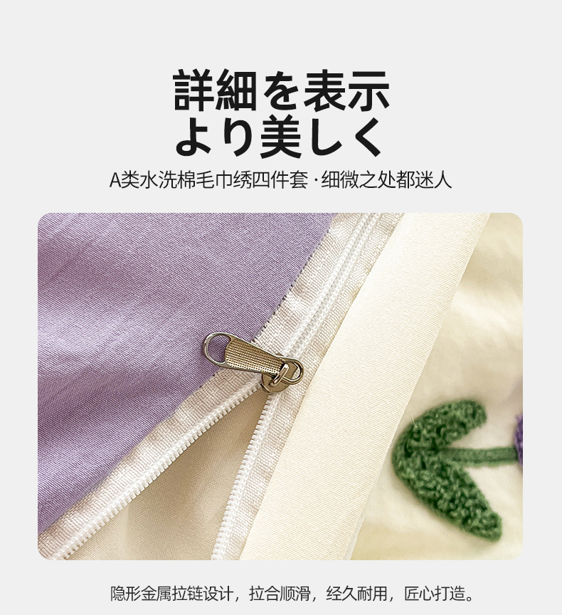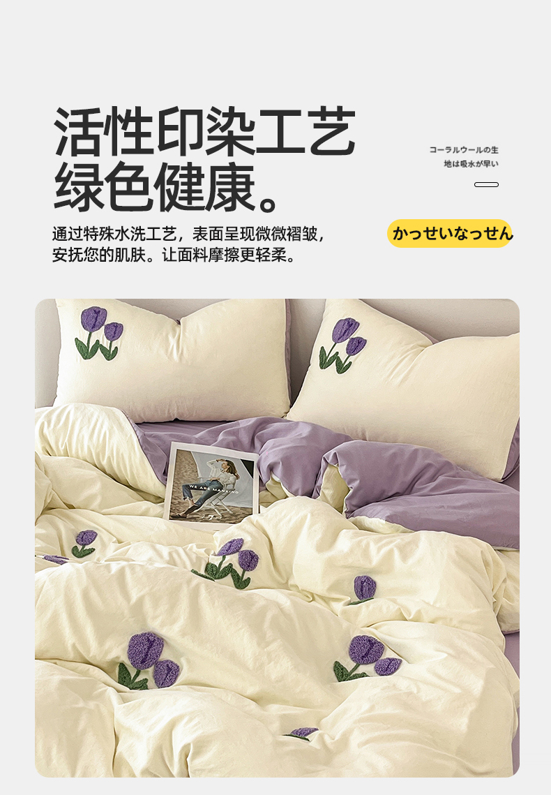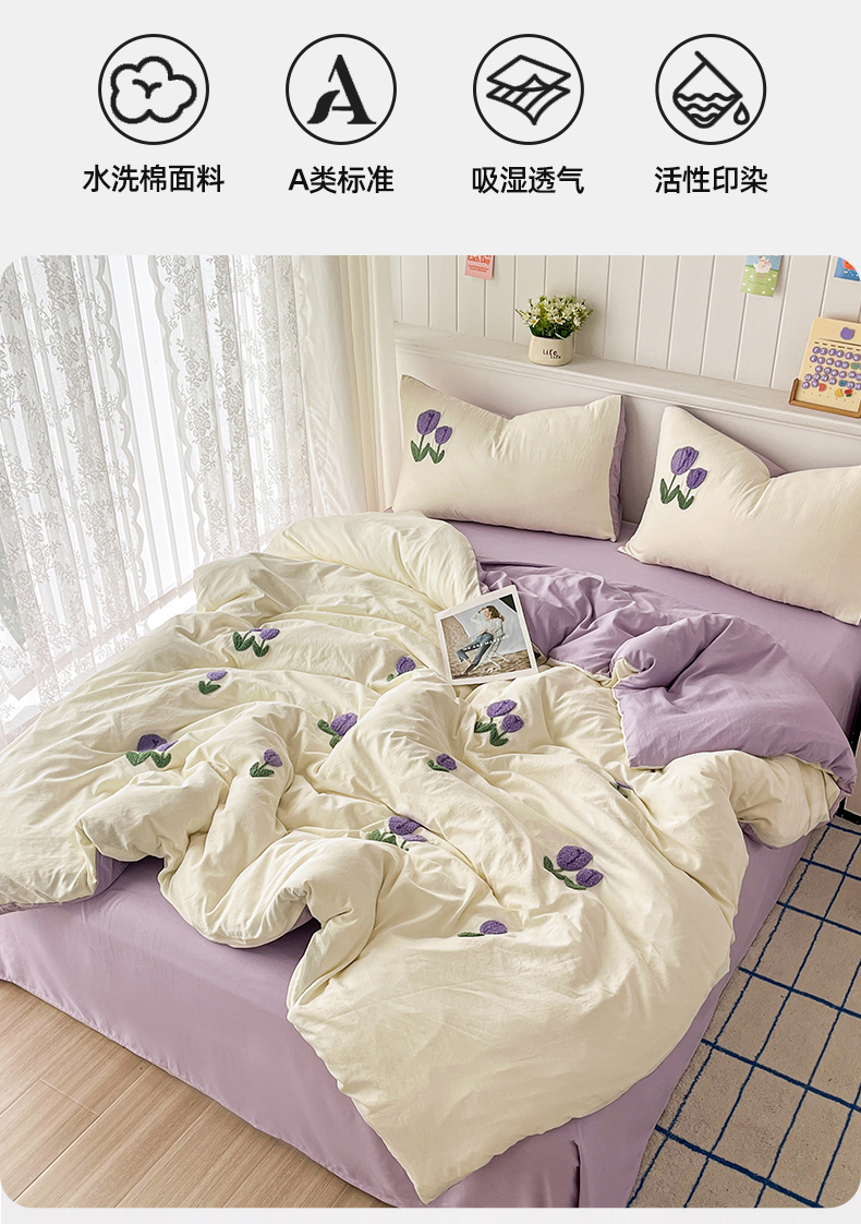 当前位置: 91家纺网 > 商品网购 > 床品套件 > 四件套 > 水洗棉四件套 > 多品家纺 2024新款水洗棉毛巾绣四件套郁见花海 郁见花海 白+紫