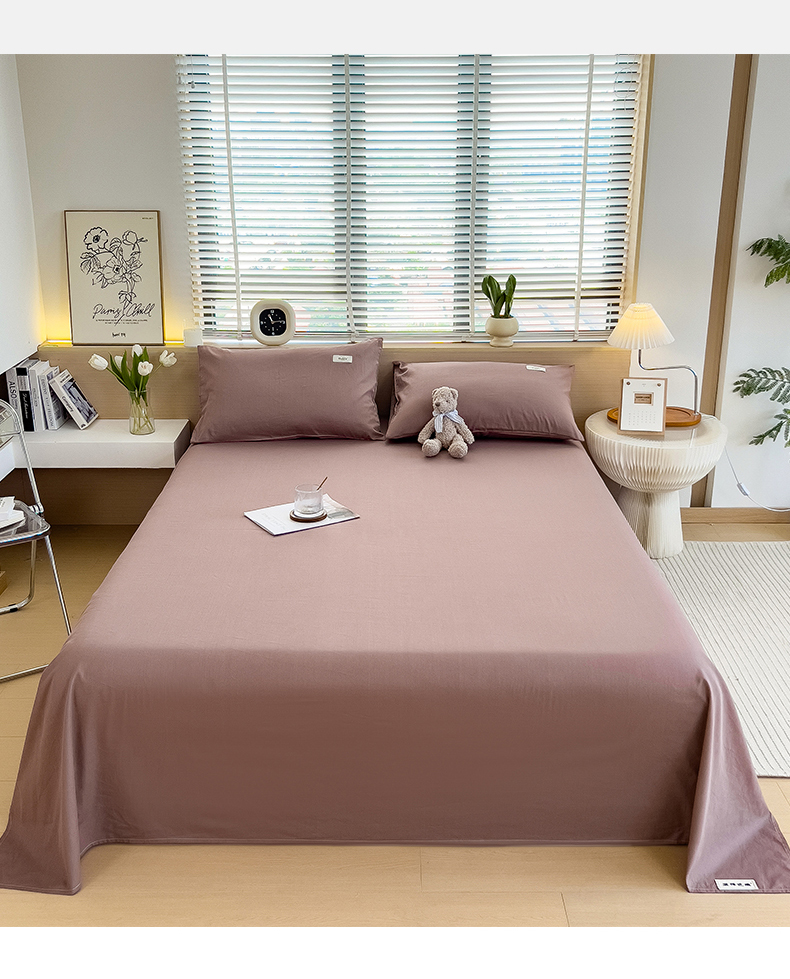 798家纺 2025新款12868全棉格子纯色床单 红驼
