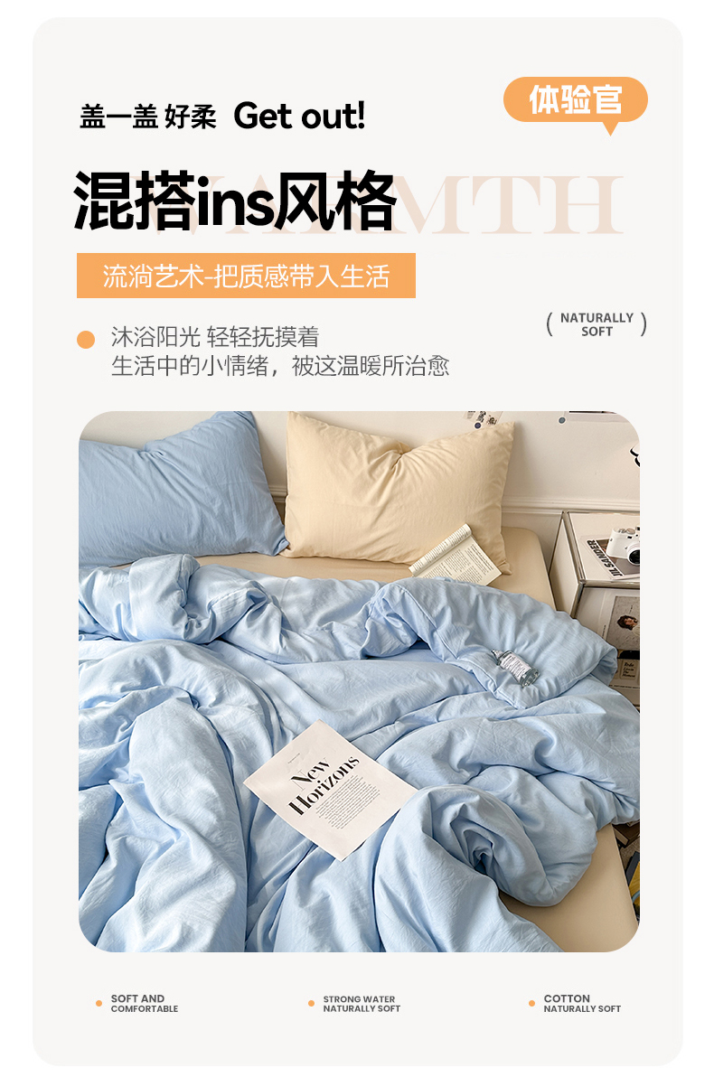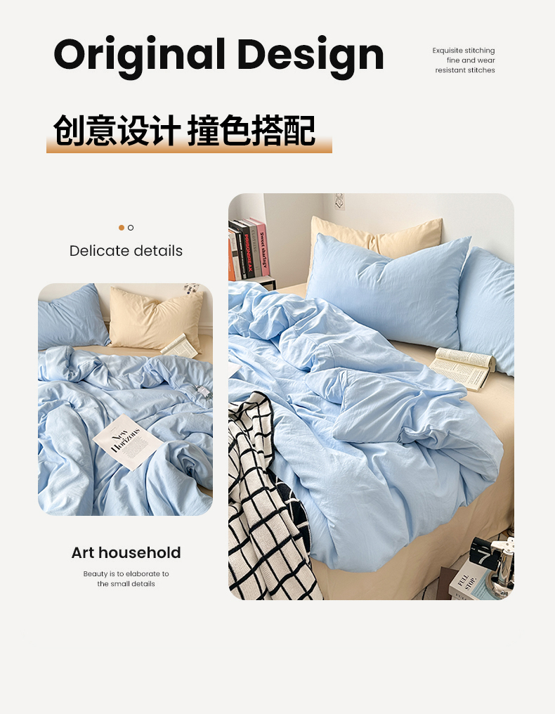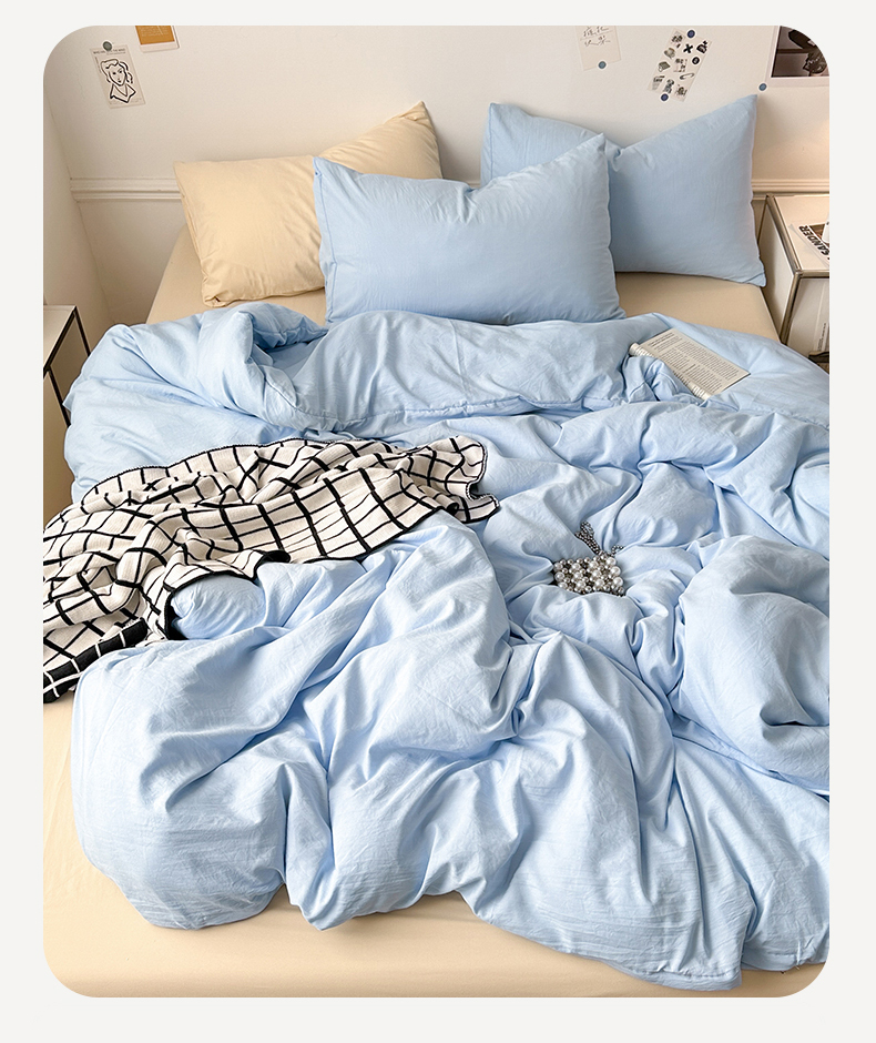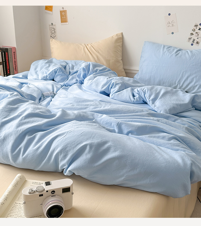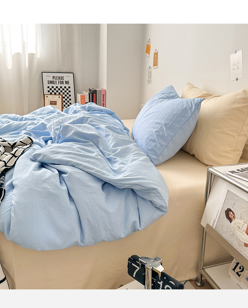 当前位置: 91家纺网 > 商品网购 > 床品套件 > 四件套 > 水洗棉四件套 > 多品家纺 2024新款超柔混搭水洗棉四件套 雾霾蓝+米黄