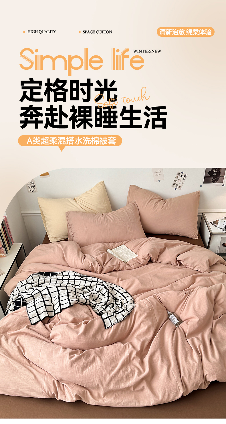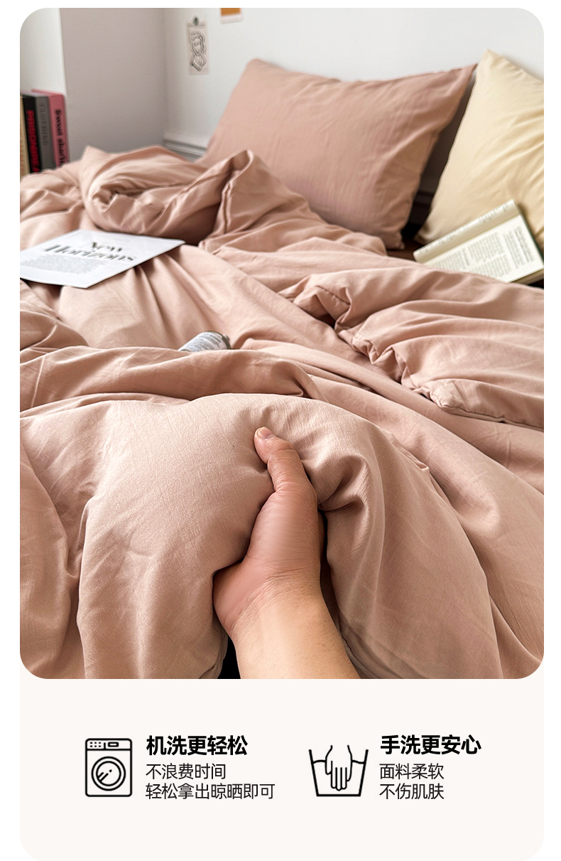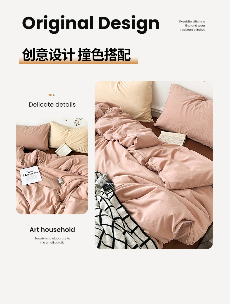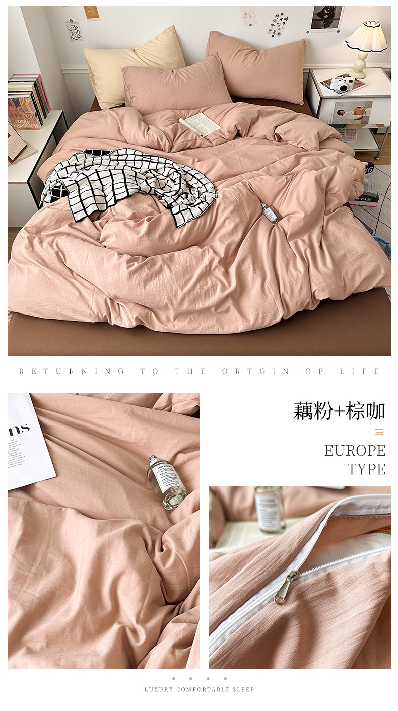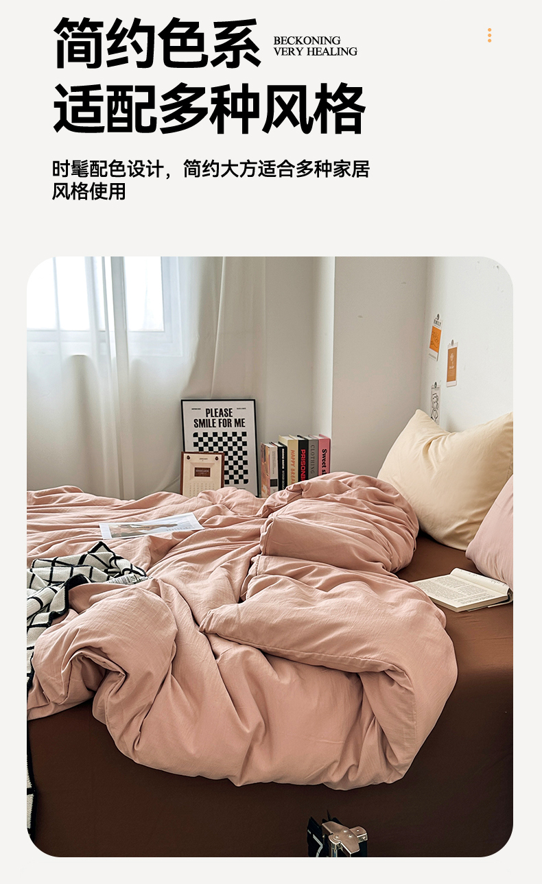• 91家纺网 家纺一手货源 找家纺 多品家纺 2024新款超柔混搭水洗棉四件套--单被套 藕粉+棕咖