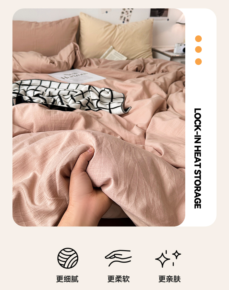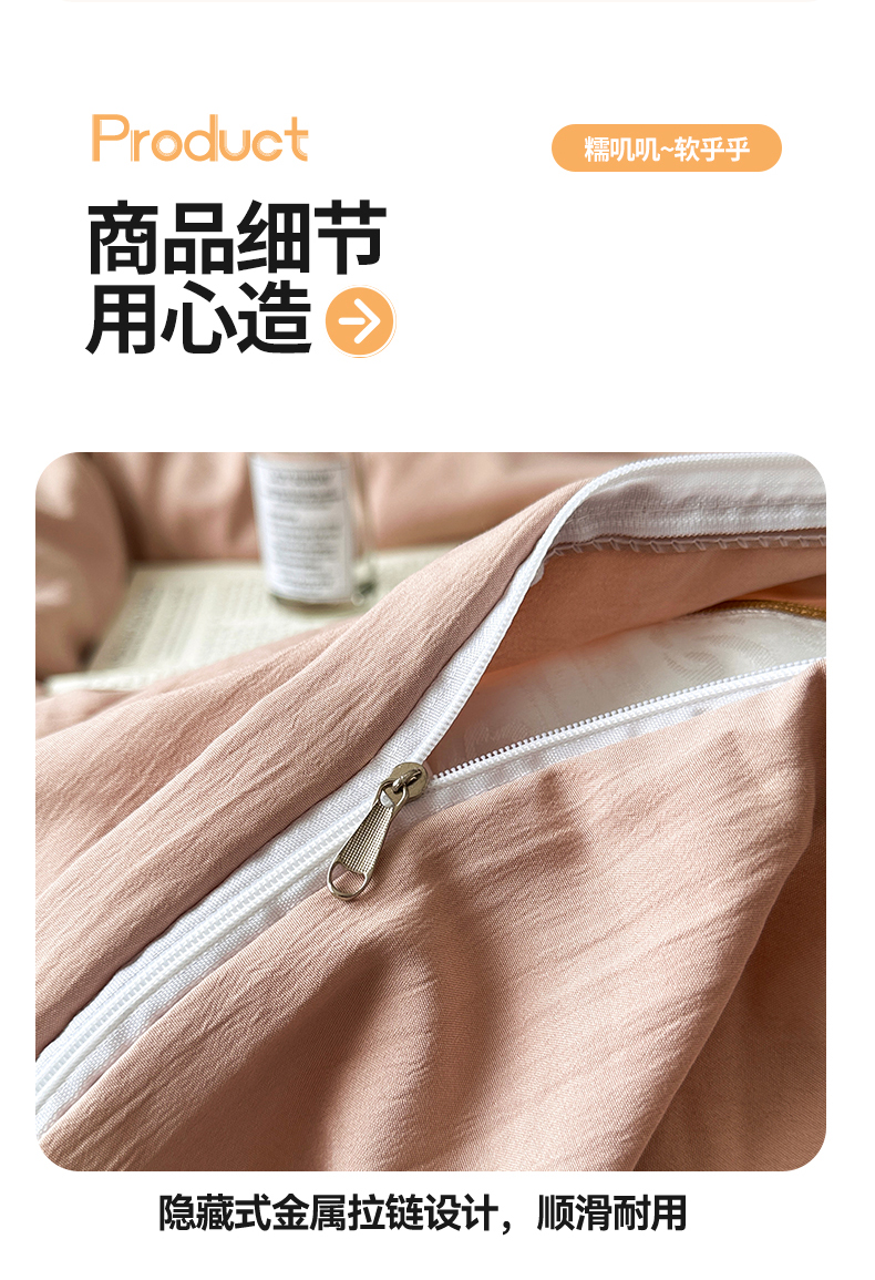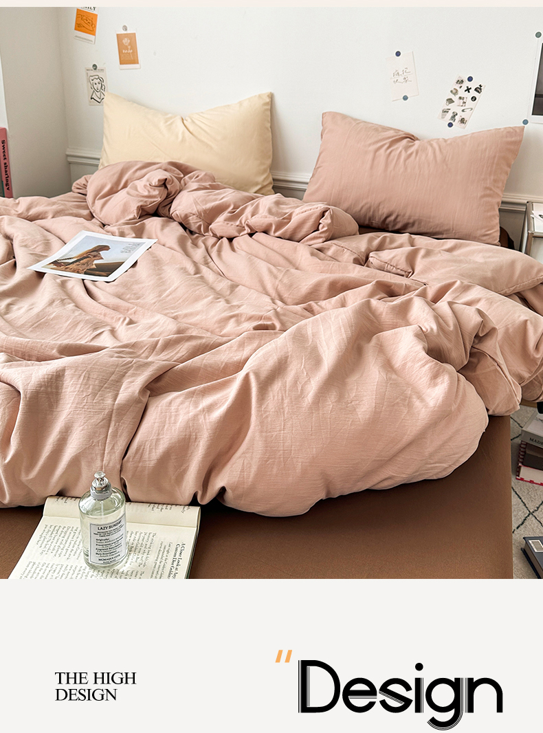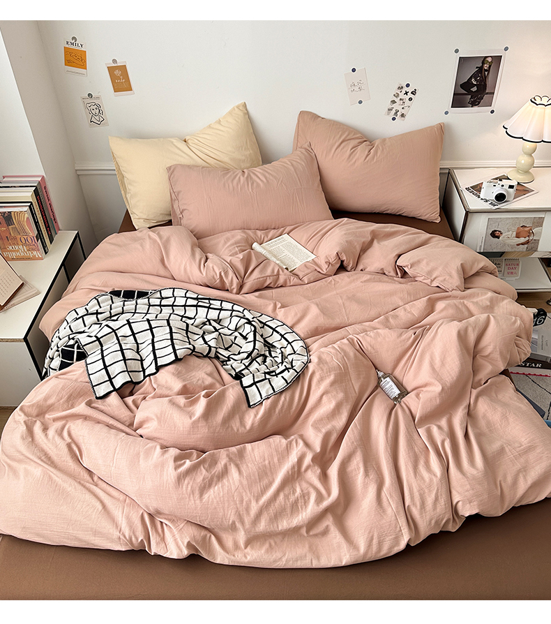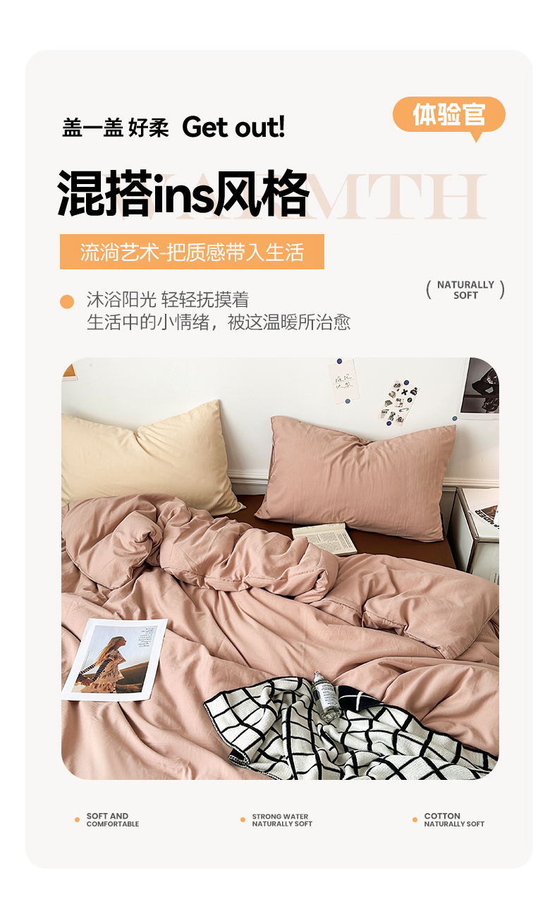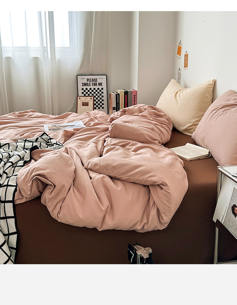 • 91家纺网 家纺一手货源 找家纺 多品家纺 2024新款超柔混搭水洗棉四件套--单被套 藕粉+棕咖