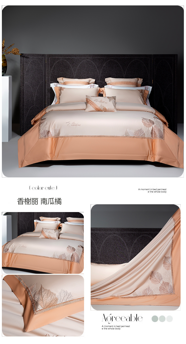 诗黛尔 2024秋冬新款长绒棉刺绣四件套-香榭丽系列 香榭丽-南瓜橘