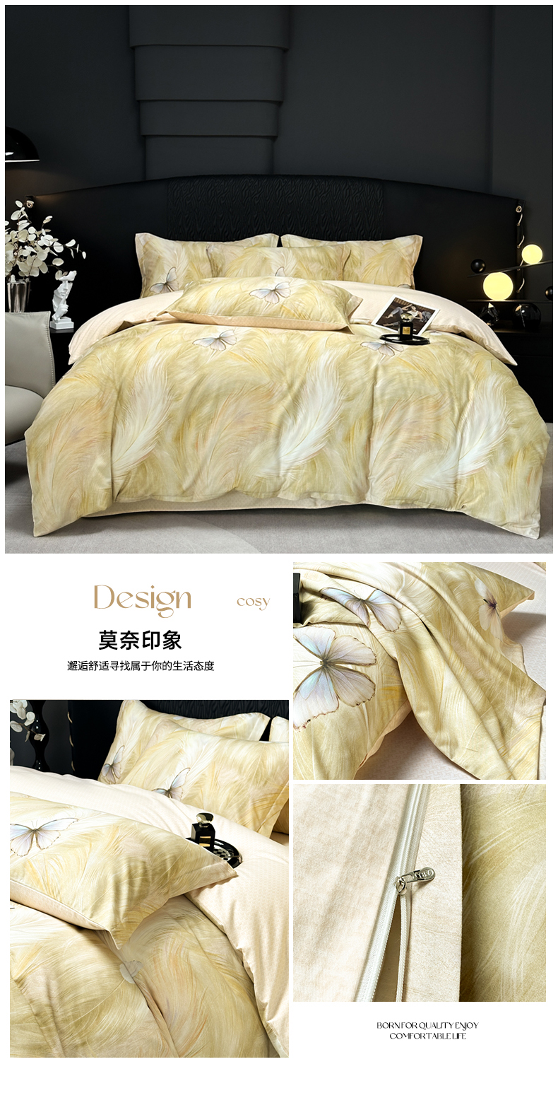 商品名称:一比一家纺 2024新款莱赛尔纤维新疆棉陶瓷磨毛秋冬温感四件套亲肤保暖 莫奈印象