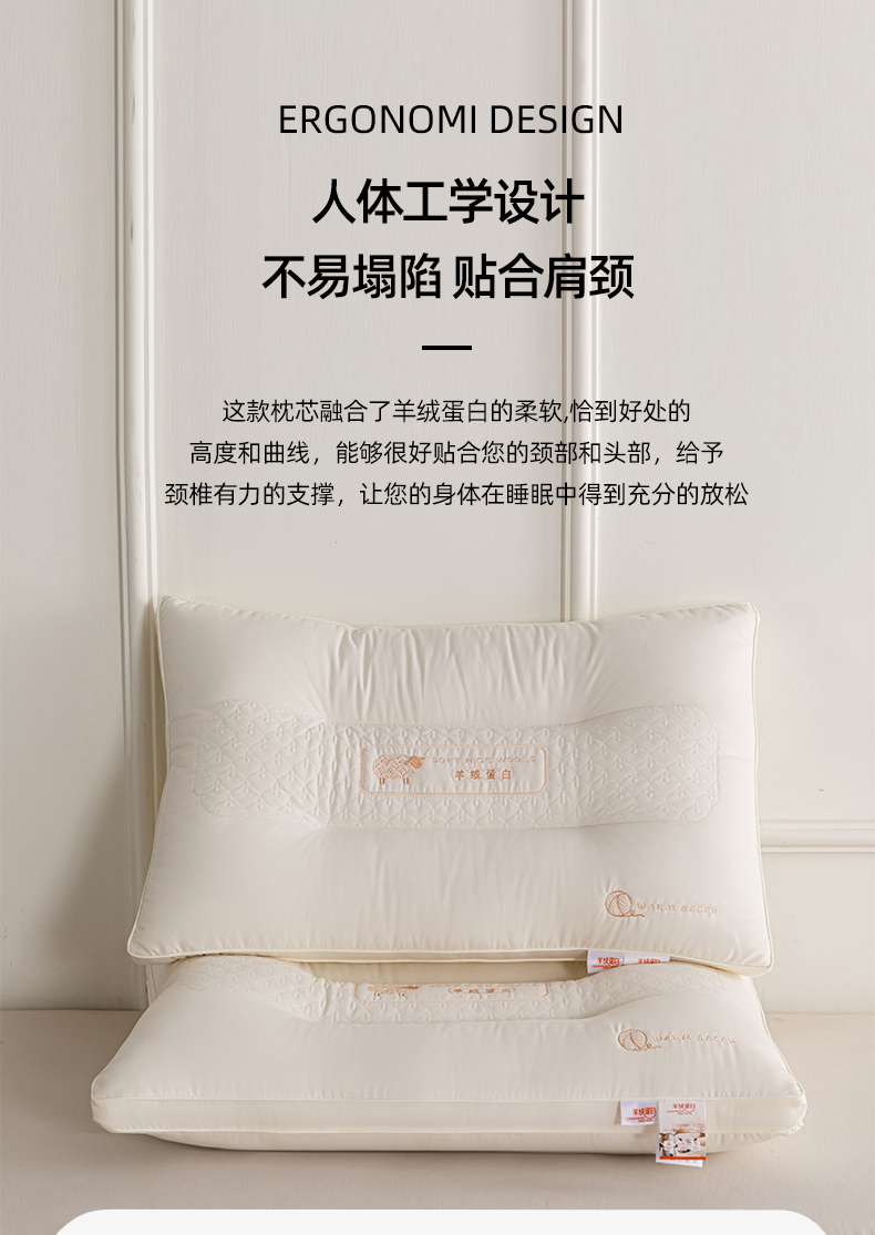 当前位置: 91家纺网 > 商品网购 > 枕头/枕芯/保健枕/颈椎枕 > (总)麦肯锡 2024新款羊绒蛋白枕 枕头枕芯48×74㎝