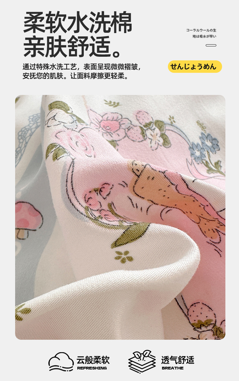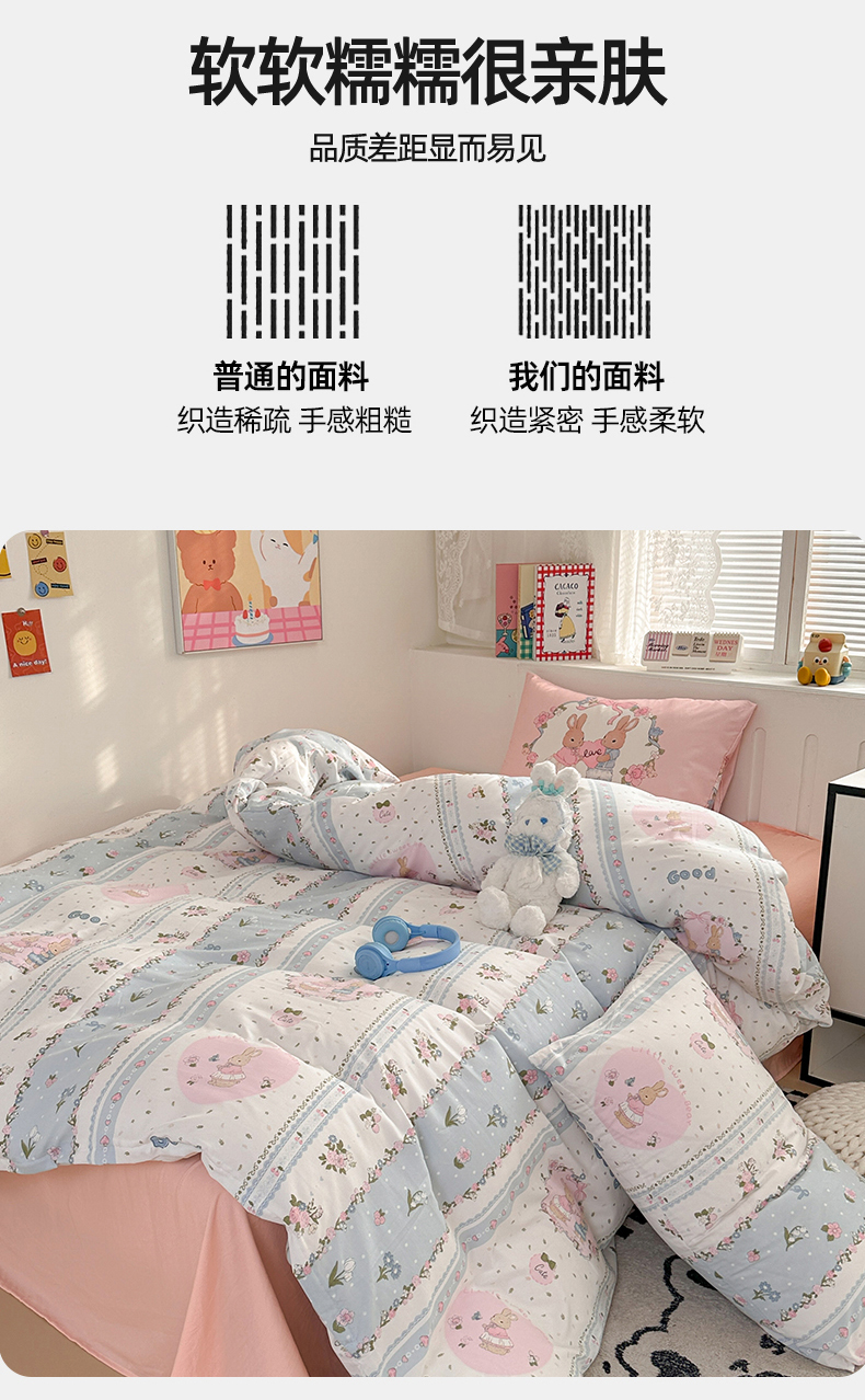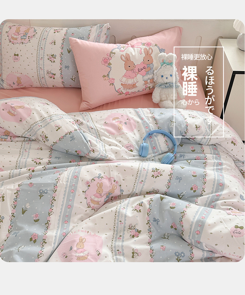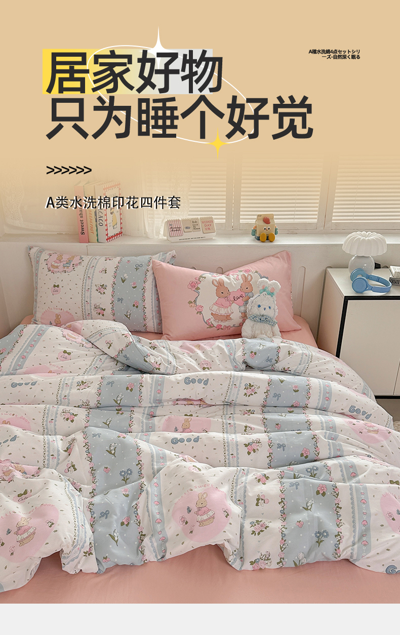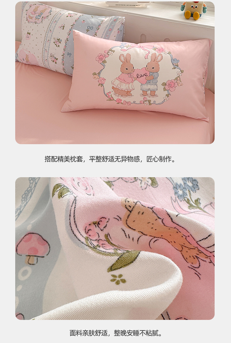 当前位置: 91家纺网 > 商品网购 > 床品套件 > 四件套 > 水洗棉四件套 > 多品家纺 2024新款水洗棉大版枕套混搭四件套 兔兔庄园