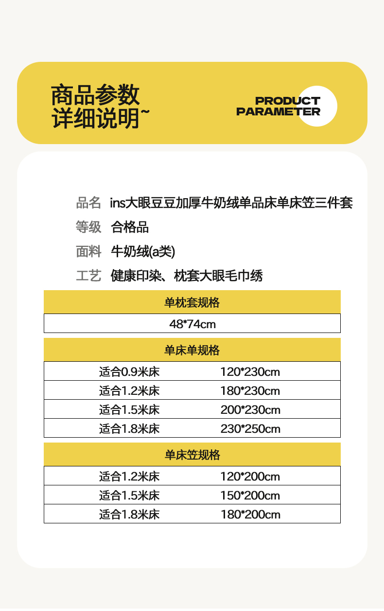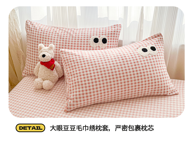 商品名称:(总)桃子家居 2025新款A类ins大眼豆豆加厚牛奶绒单品床单床笠三件套系列