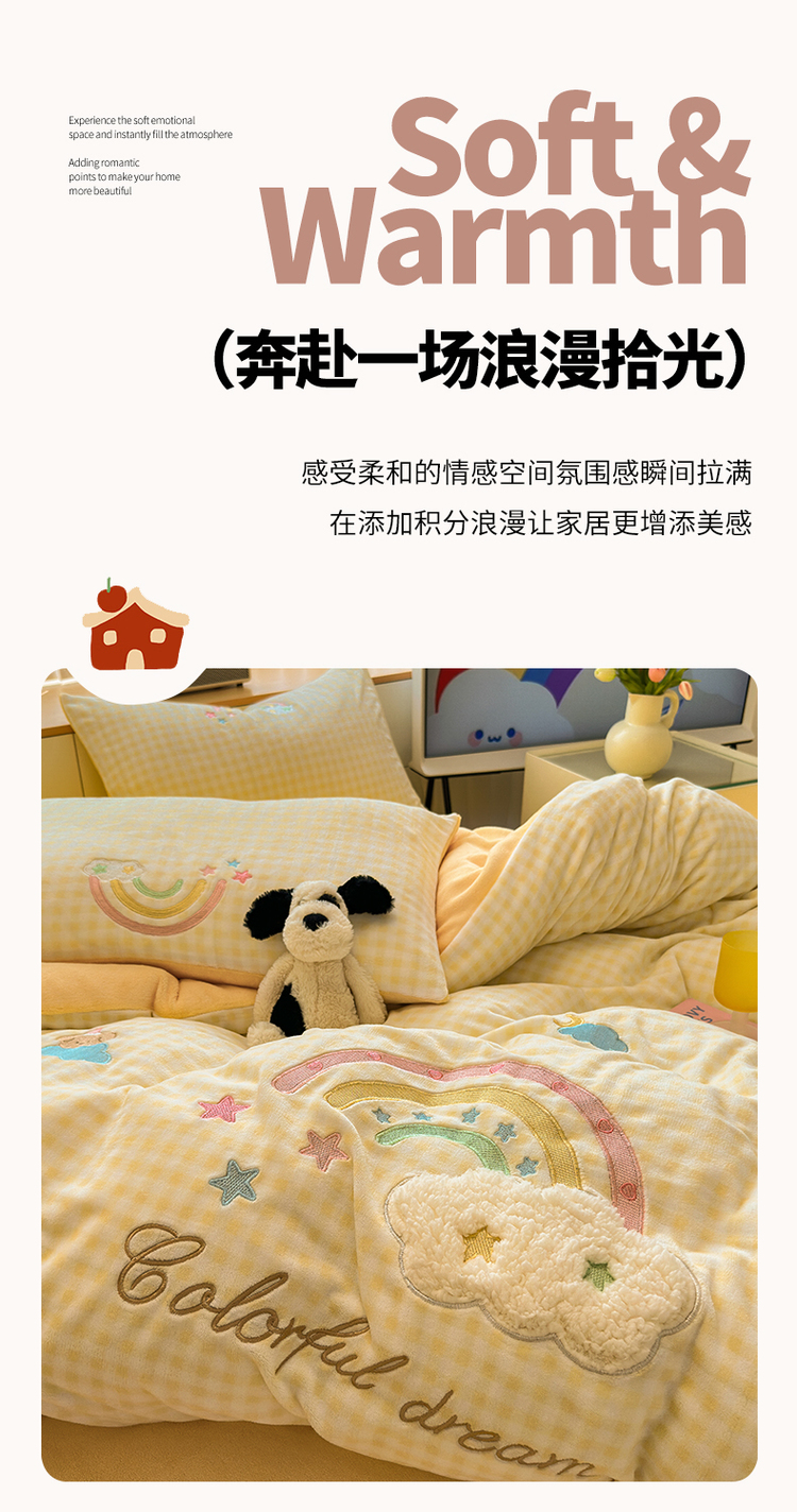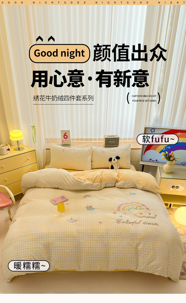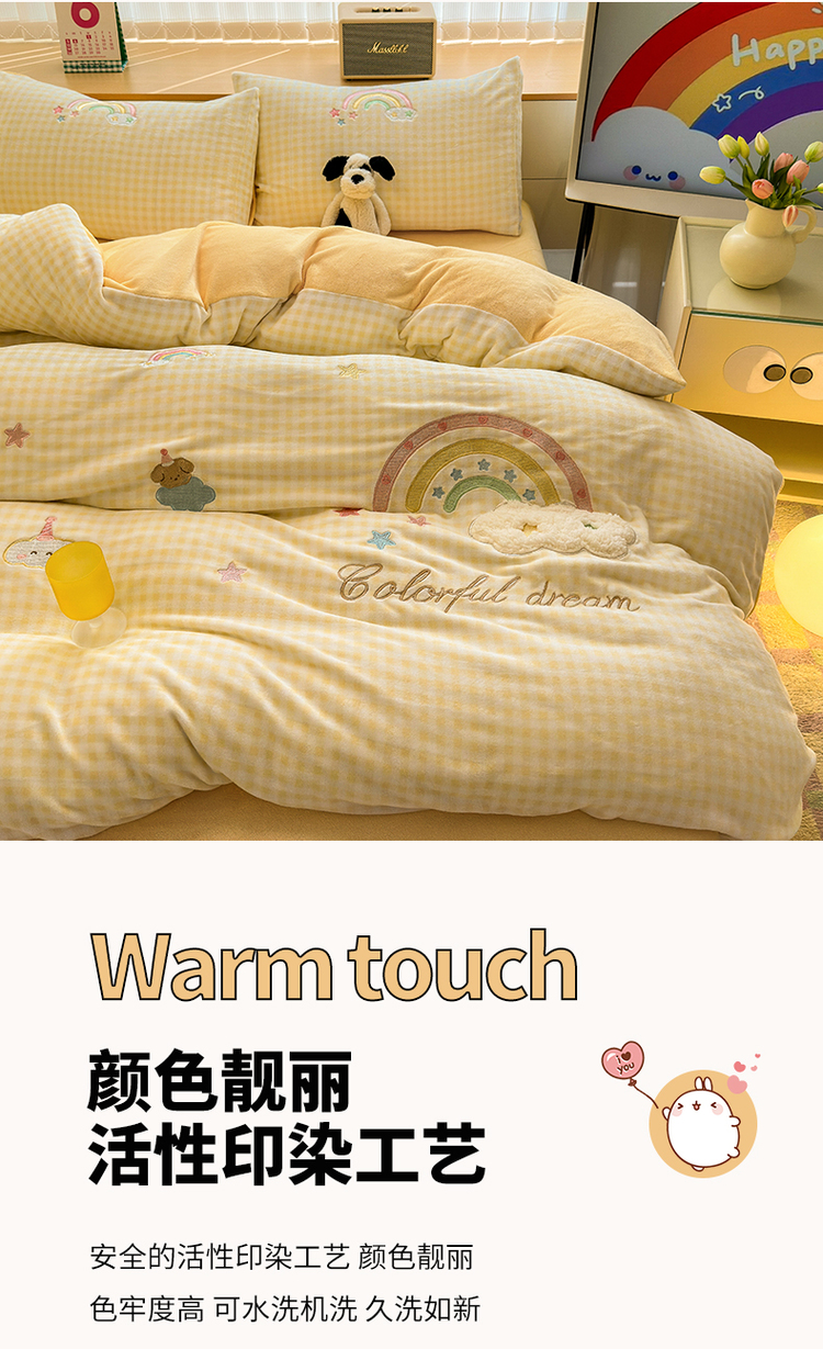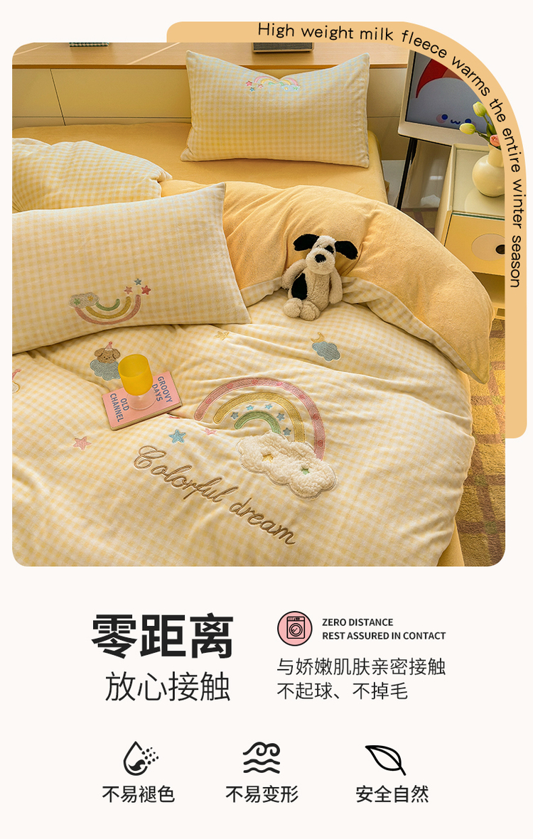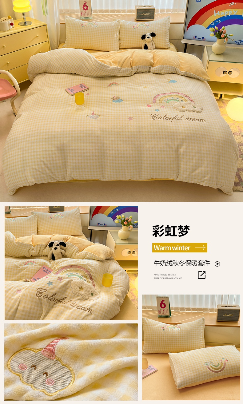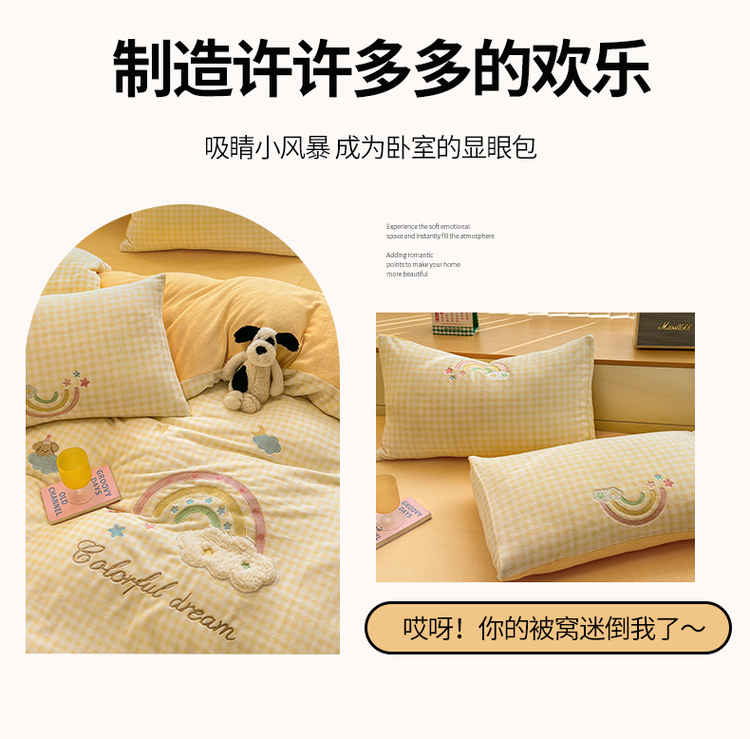 当前位置: 91家纺网 > 商品网购 > 床品套件 > 四件套 > 牛奶绒四件套 > (买家秀 爆款不断货)A类母婴级牛奶绒刺绣四件套珊瑚绒雪花绒四件套刺绣贴布绣牛奶绒绣花毛巾绣四件套 彩虹梦