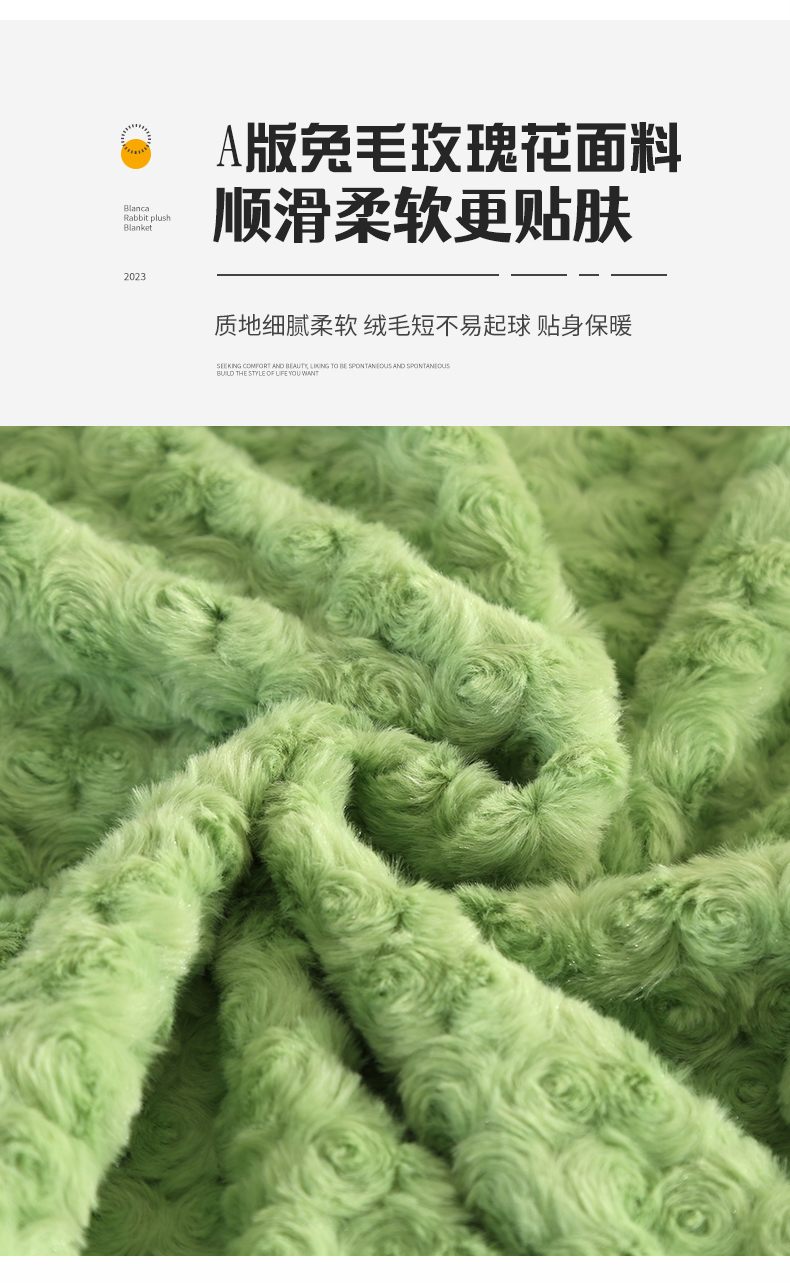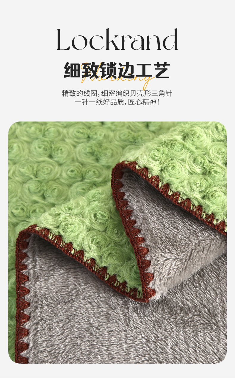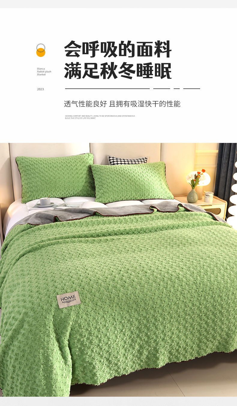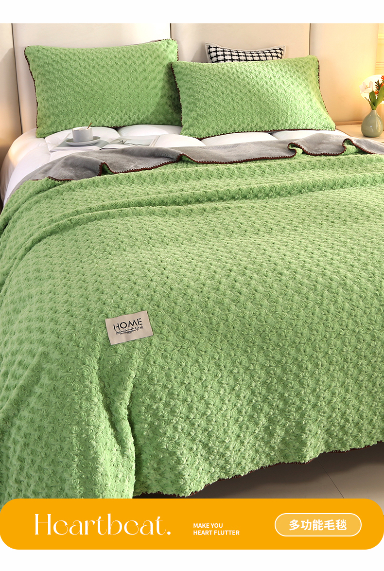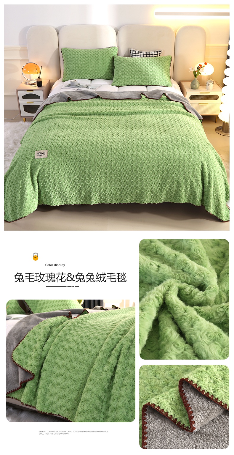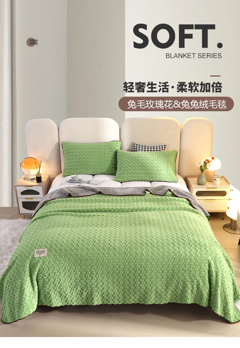 商品名称:悦织湾家纺 兔兔绒玫瑰花毛毯 玫瑰绿