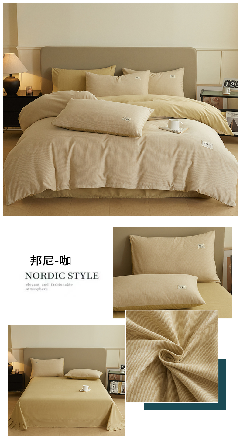 当前位置: 91家纺网 > 商品网购 > 床品套件 > 四件套 > 普通磨毛四件套 > 悦织湾家纺 2025春秋新款纯色全棉纯棉磨毛四件套床单枕套被套三四件套 邦尼-咖