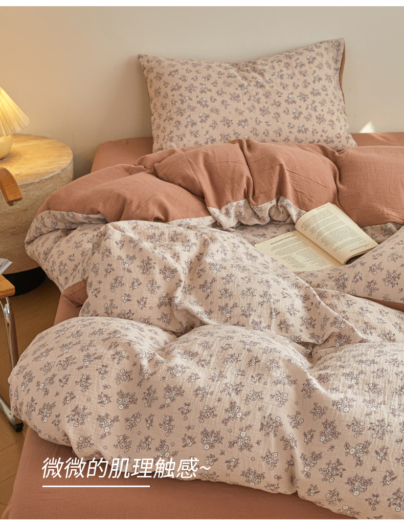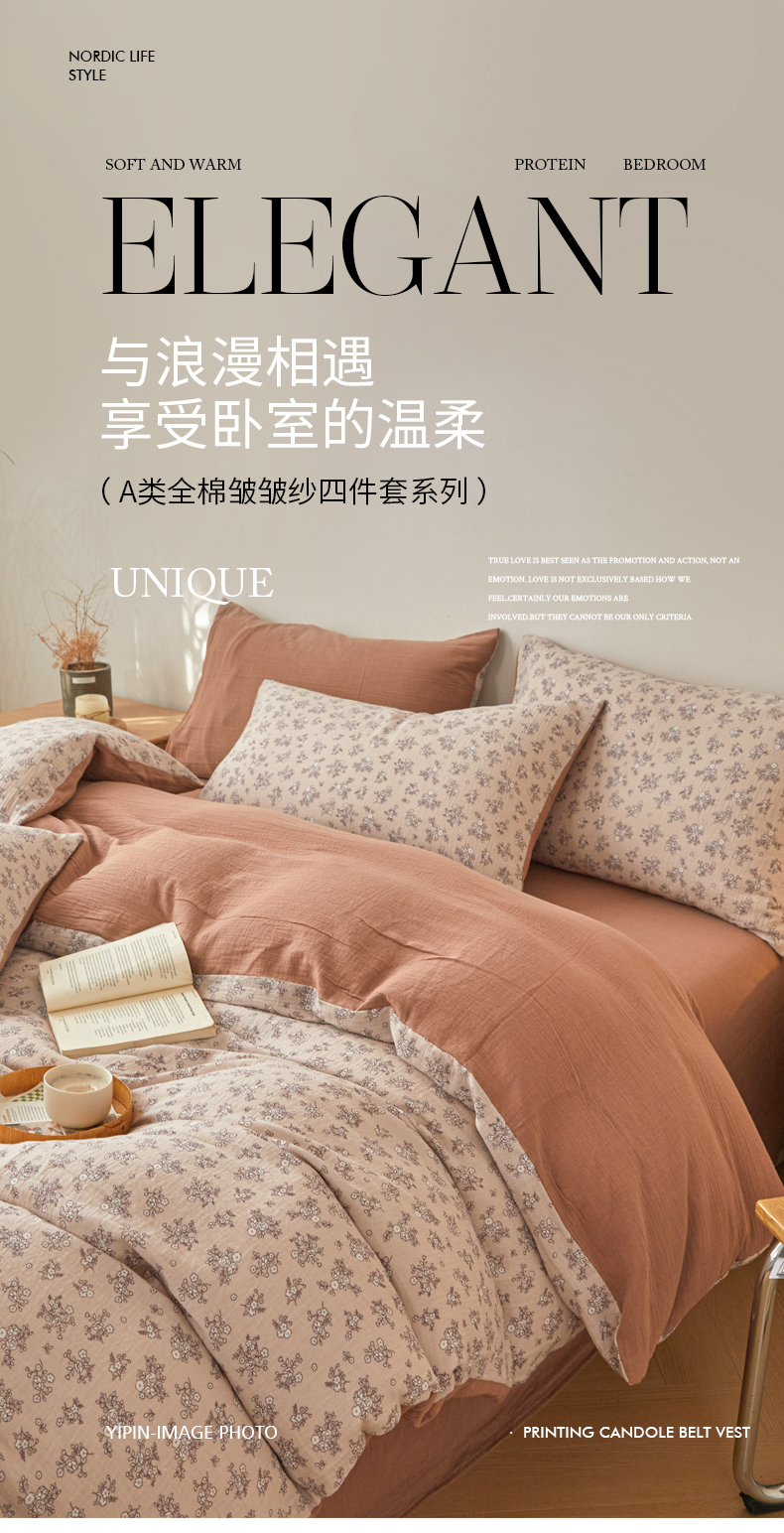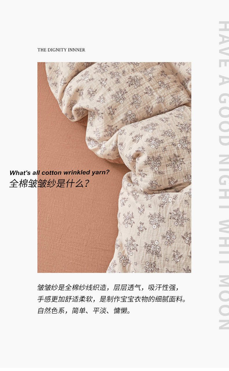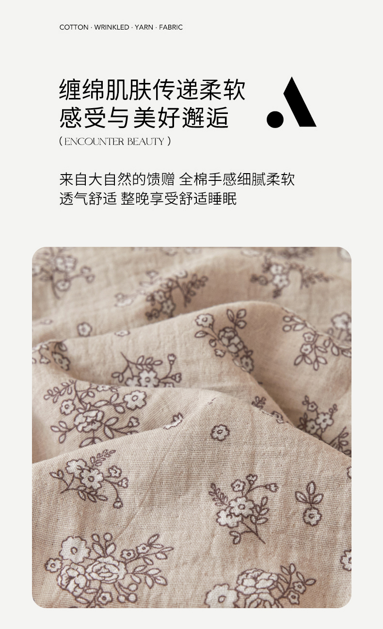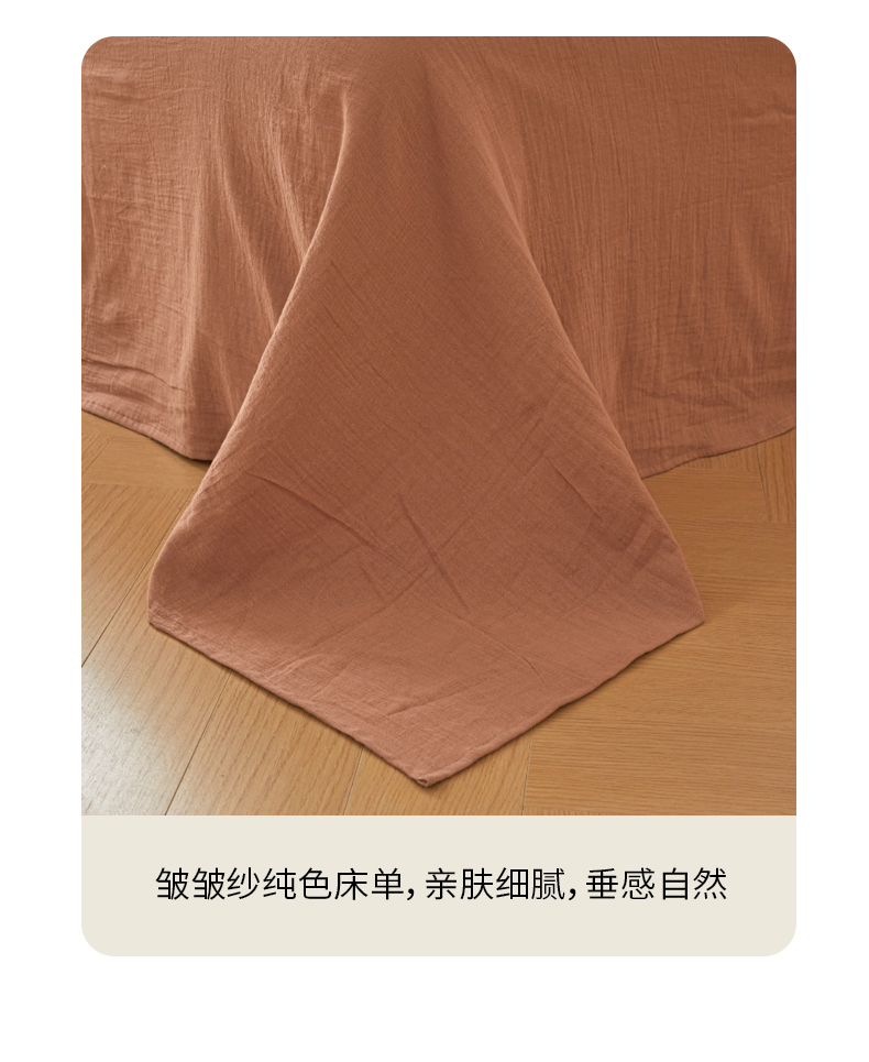 商品名称:618家纺 2025新款A类母婴级全棉三层纱皱皱纱纯棉四件套 栀子咖