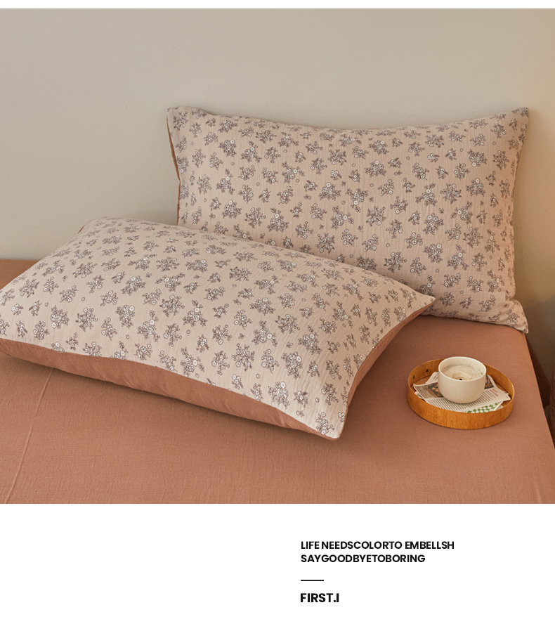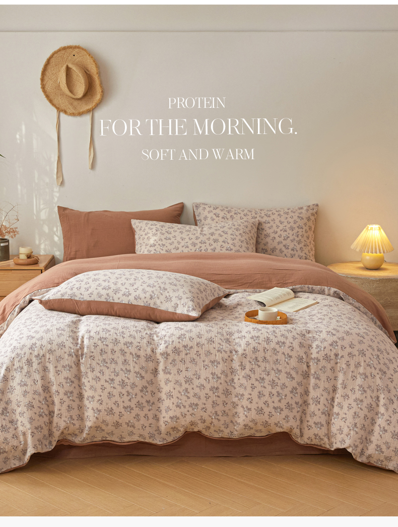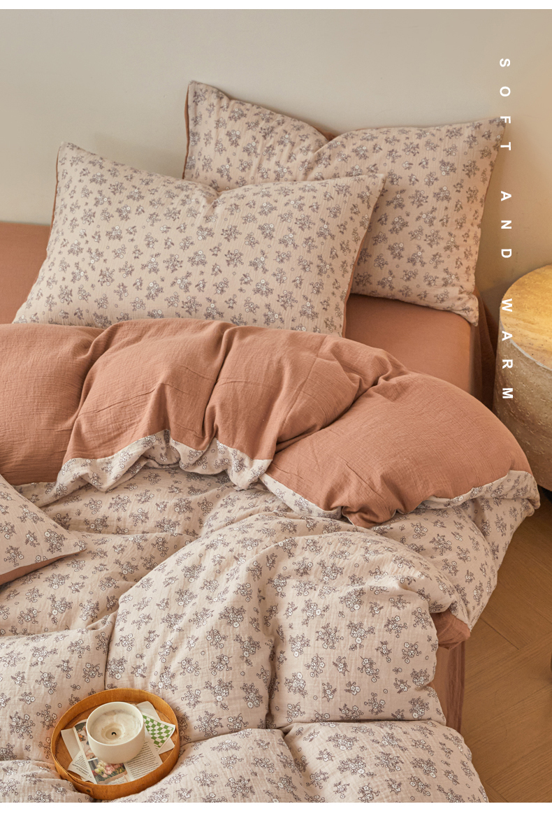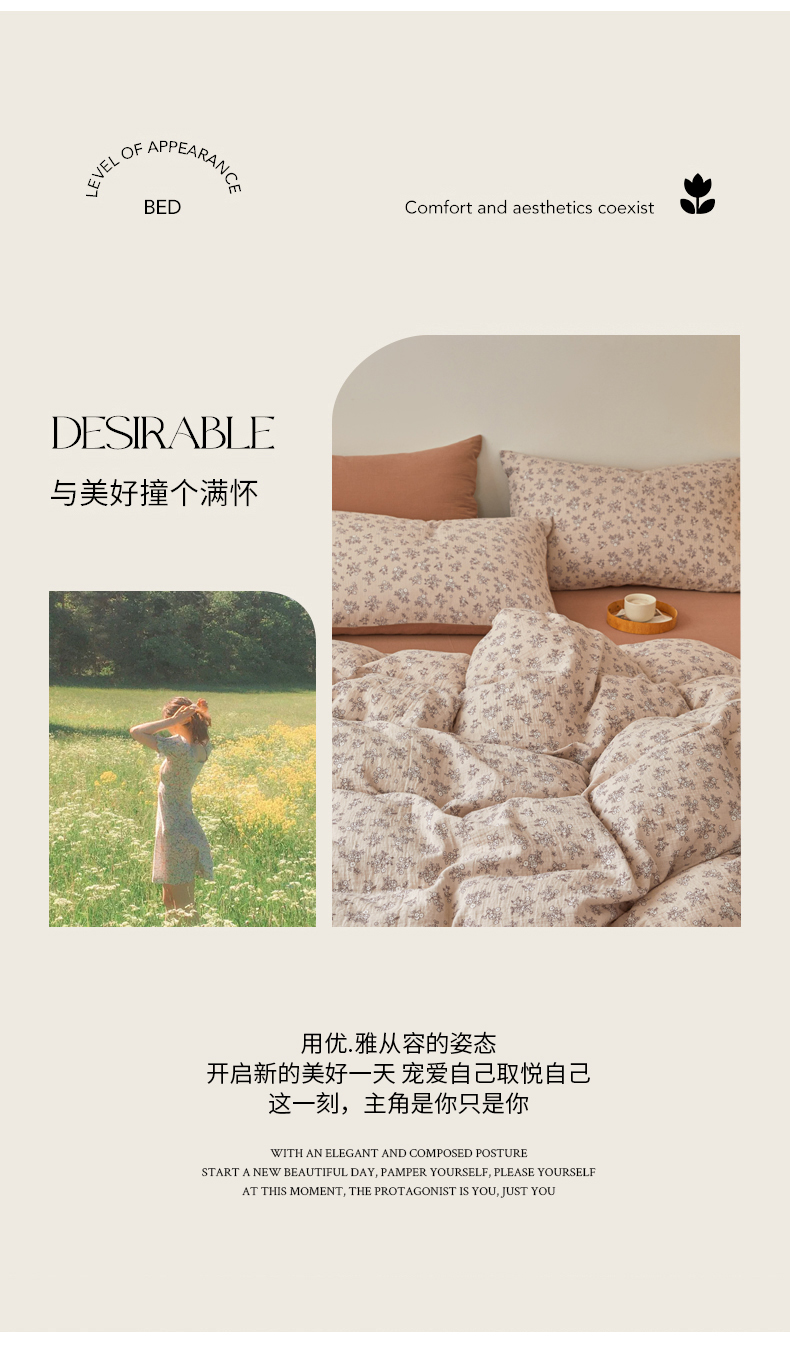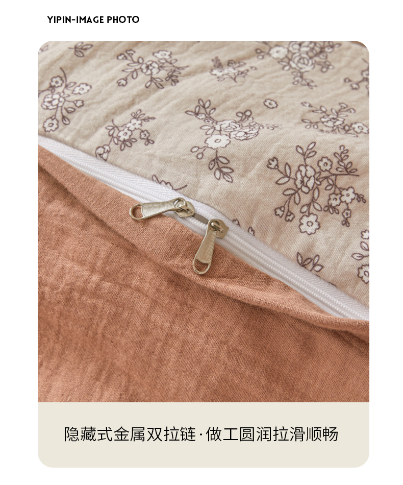 商品名称:618家纺 2025新款A类母婴级全棉三层纱皱皱纱纯棉四件套 栀子咖