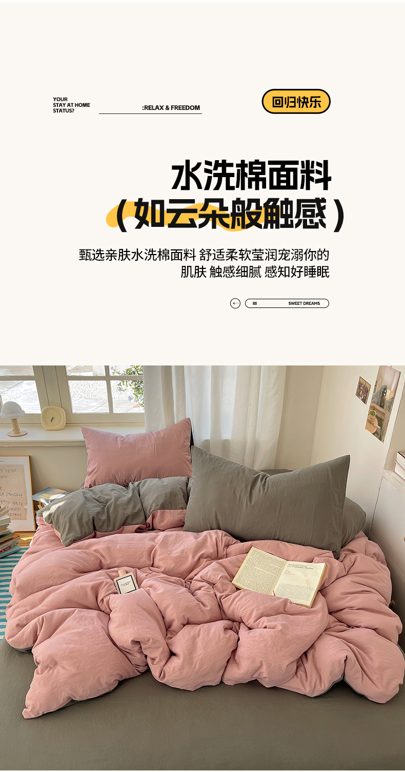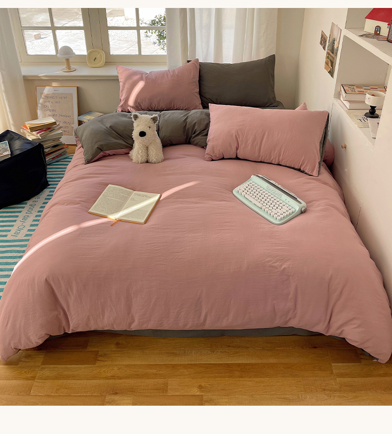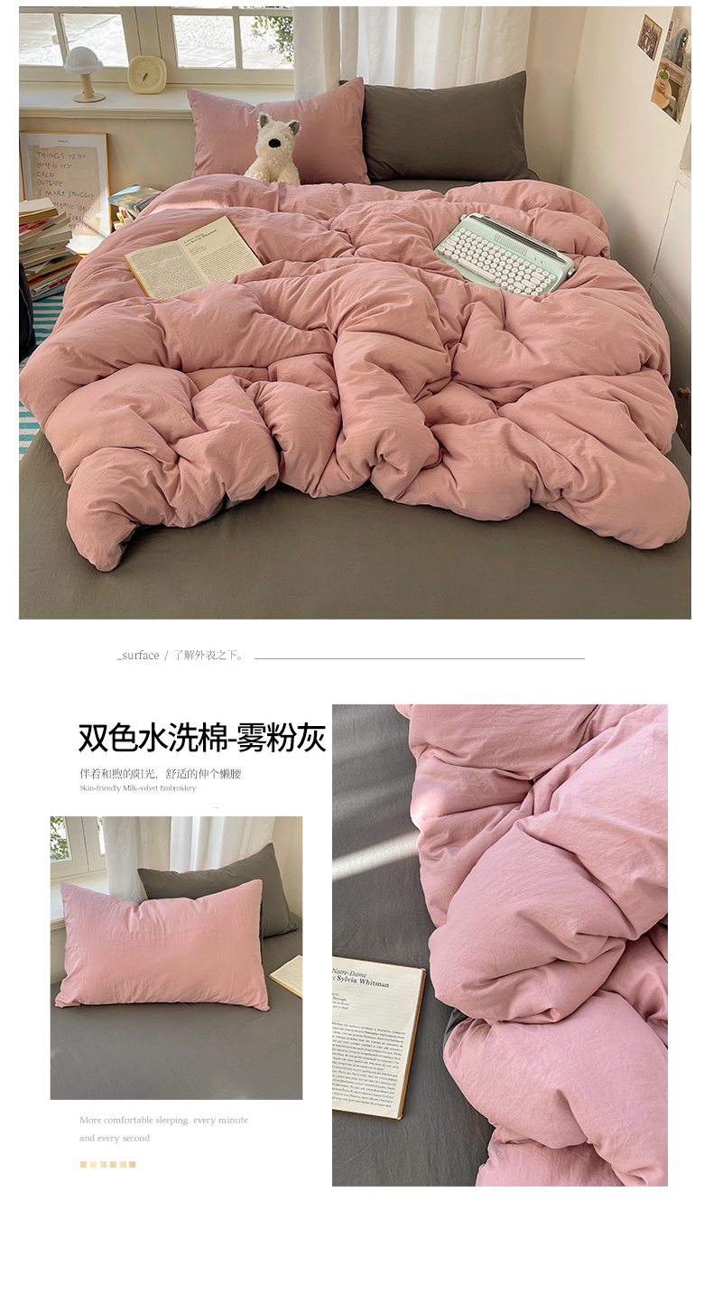当前位置: 91家纺网 > 商品网购 > 床品套件 > 四件套 > 水洗棉四件套 > 阿曼达 2025新款ins博主风纯色混搭双色水洗m四件套 双色水洗m-雾粉灰