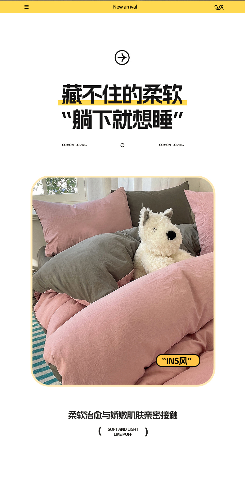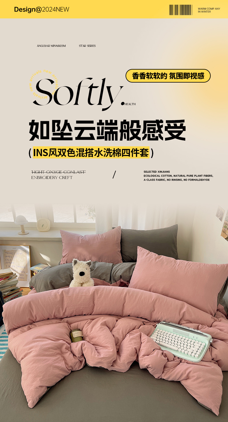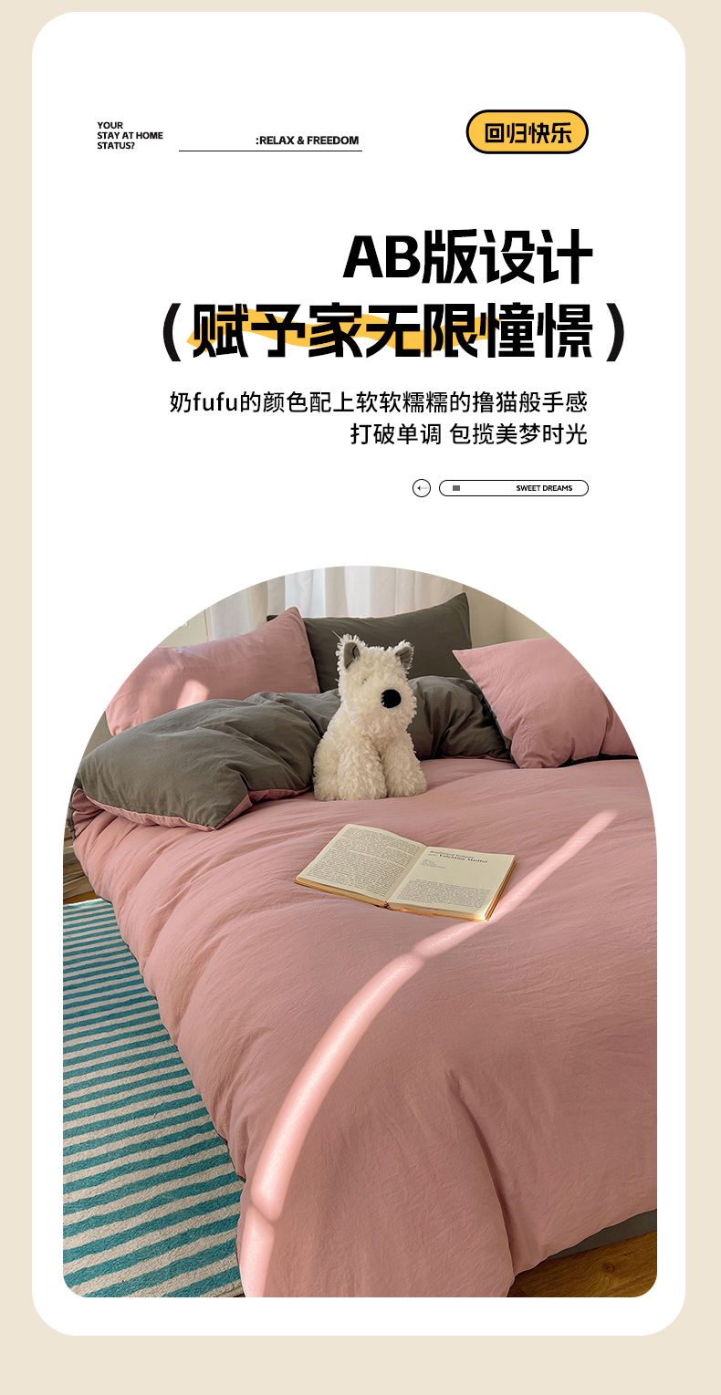 当前位置: 91家纺网 > 商品网购 > 床品套件 > 四件套 > 水洗棉四件套 > 阿曼达 2025新款ins博主风纯色混搭双色水洗m四件套 双色水洗m-雾粉灰